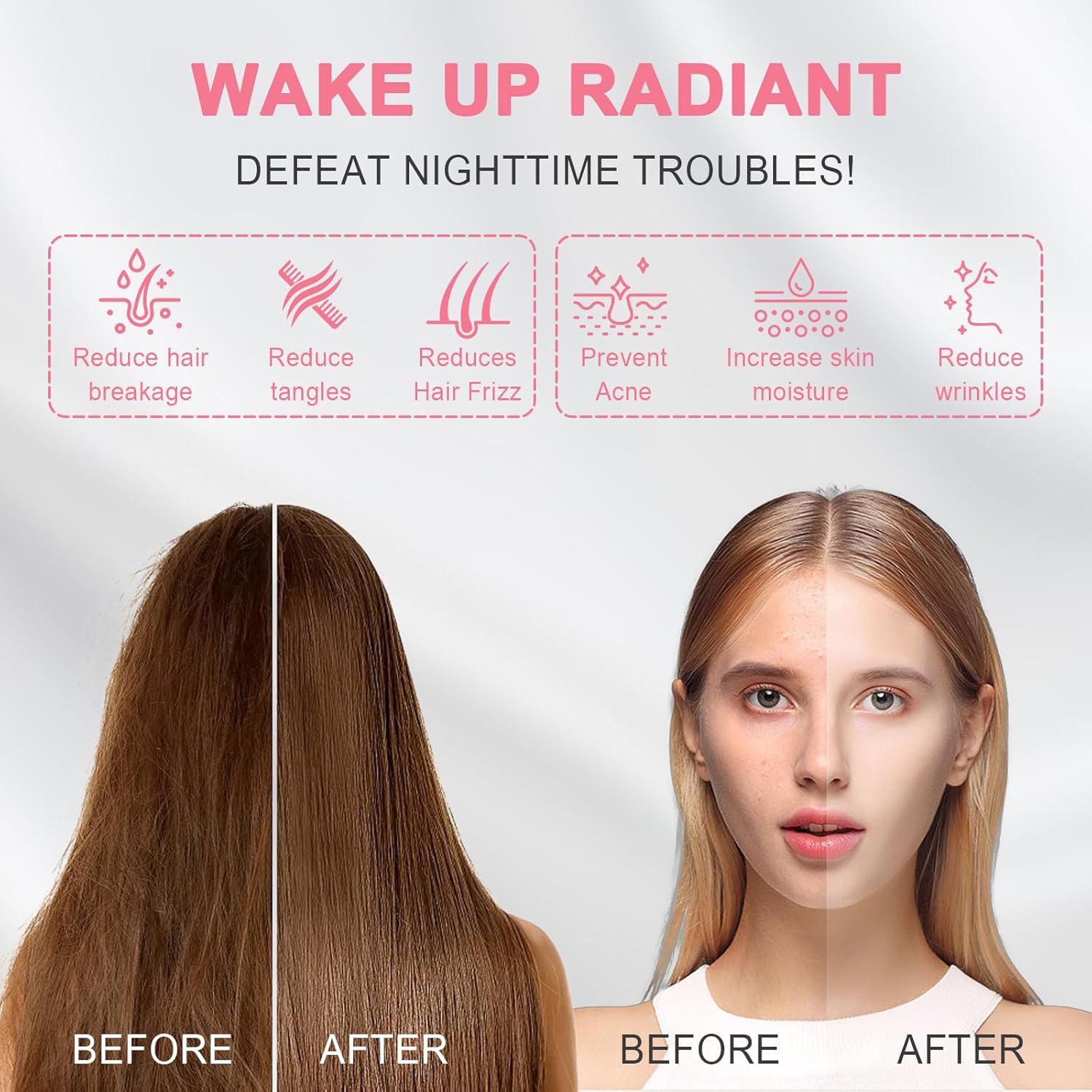 Hair and Skin Benefits: The 100% mulberry silk pillowcase has been tested by beauty experts to protect your hair from getting knotted, reducing hair loss and shining naturally and healthily. Our cooling pillow cover has also been proven to prevent fine lines and dry wrinkles and reduce stretching and pulling on delicate facial skin. Say goodbye to restless nights! Let’s enjoy beautiful sleep