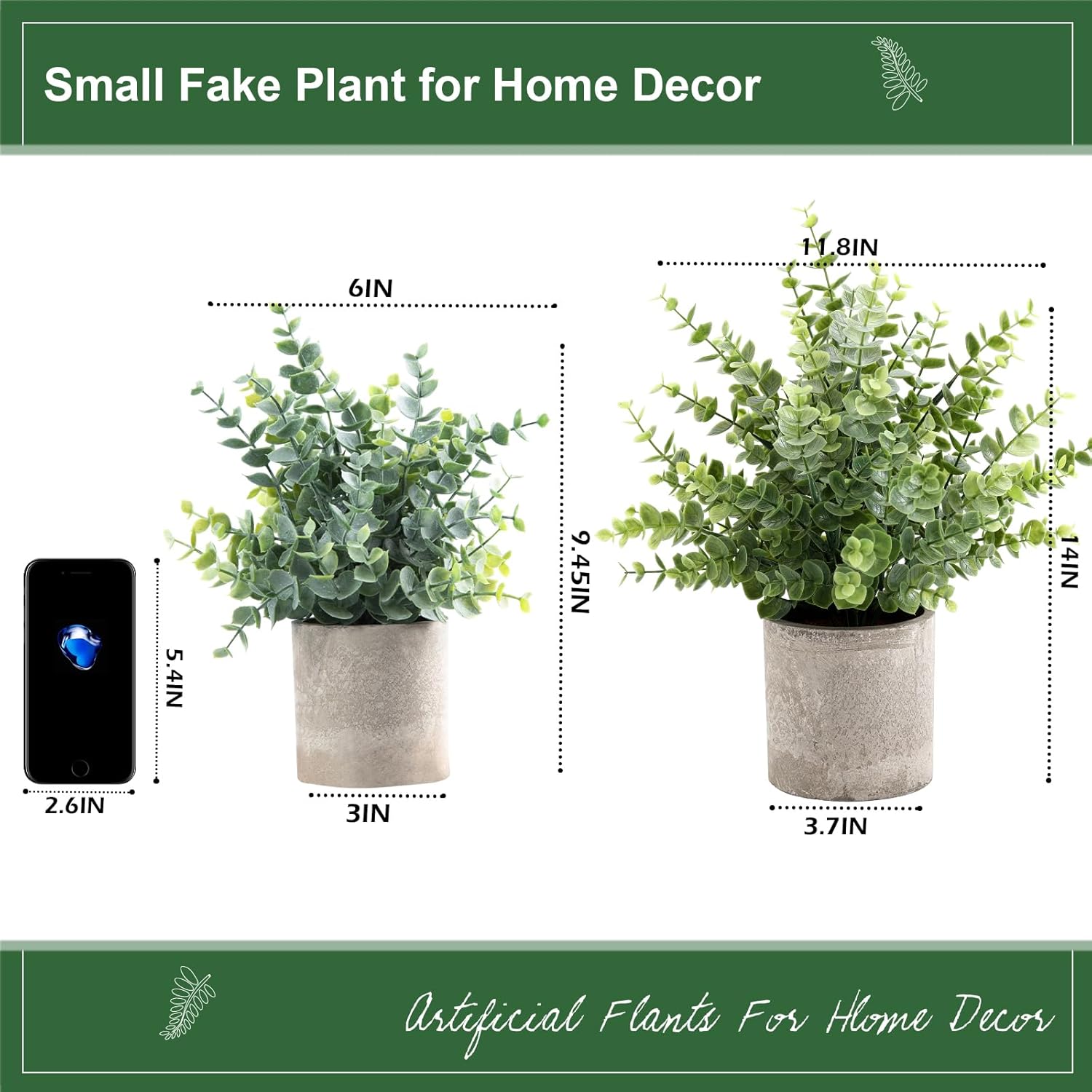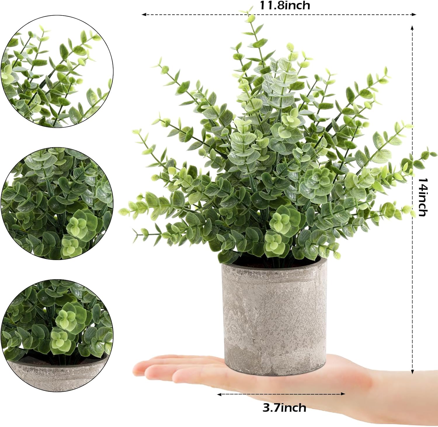 【Larger & Fuller】Our fake plant has been upgraded to a larger size,measuring 14″ wide and 11.8″ tall, pots measure 4″ tall and 3.7″ diameter. each artificial plants features realistic stems that create a full, vibrant look. This eucalyptus plant provide a fuller look, natural and real touch. Note:Those artificial plants are made of paper pulp, please don’t put it in water.