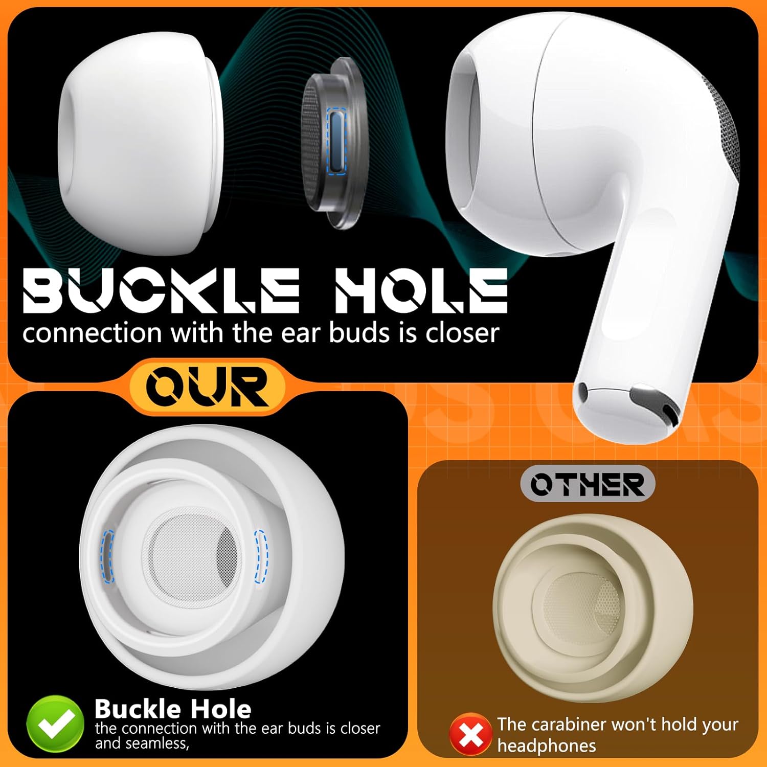 Noise-Canceling-Airpods pro replacement ear tips have two noise reduction holes on the side, Almost identical to the original tip(other silicone ear tips do not have them), which can reduce noise to keep the best noise reduction effect of the original headphone.
