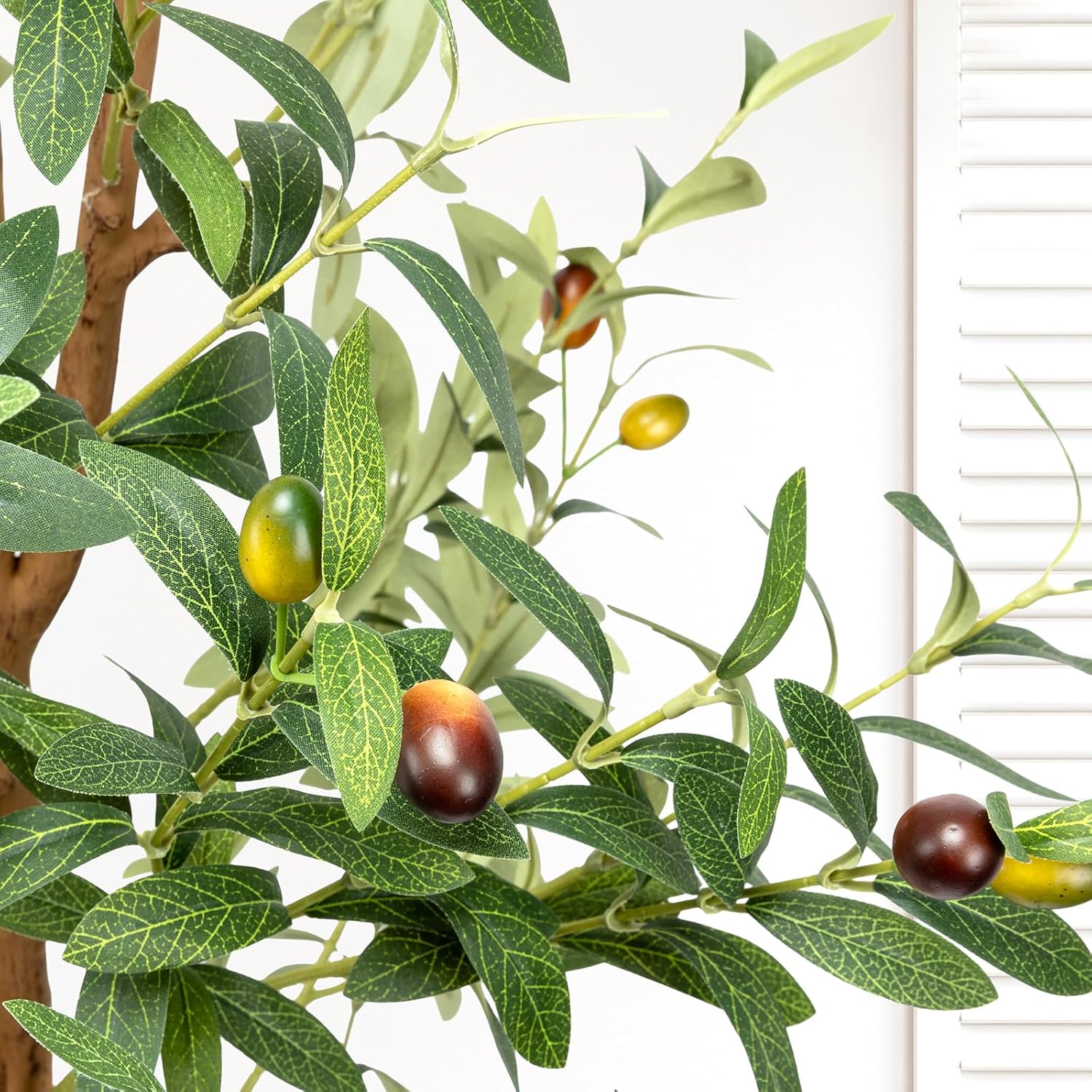 Lifelike Design – The 6-foot LuceAlberi artificial olive tree is crafted to perfectly mimic a real olive tree. Its single trunk branches into several stems, featuring olive fruits made from high-quality plastic silk fabric.