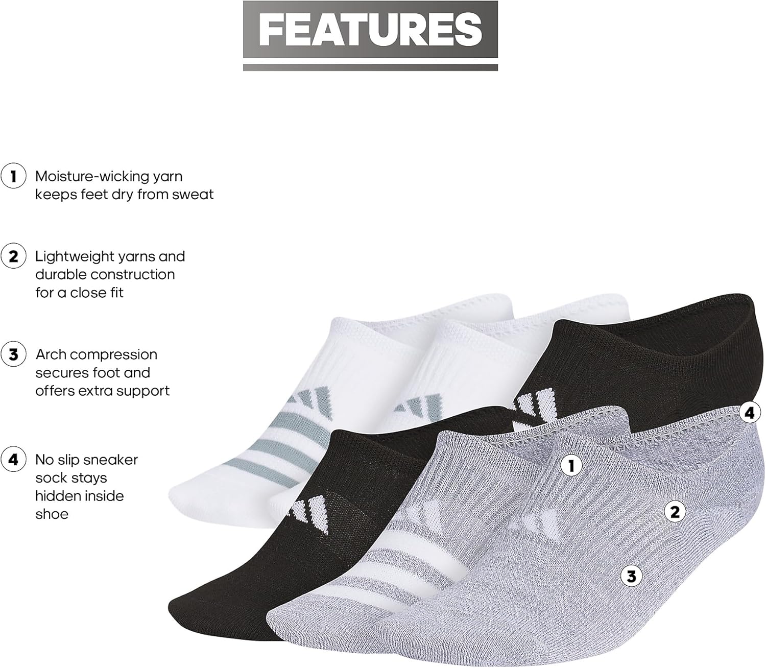adidas womens Superlite 3.0 6-pack Super No Show, Athletic Socks, Invisible Ultra Low-profile, Cushion & Arch Compression