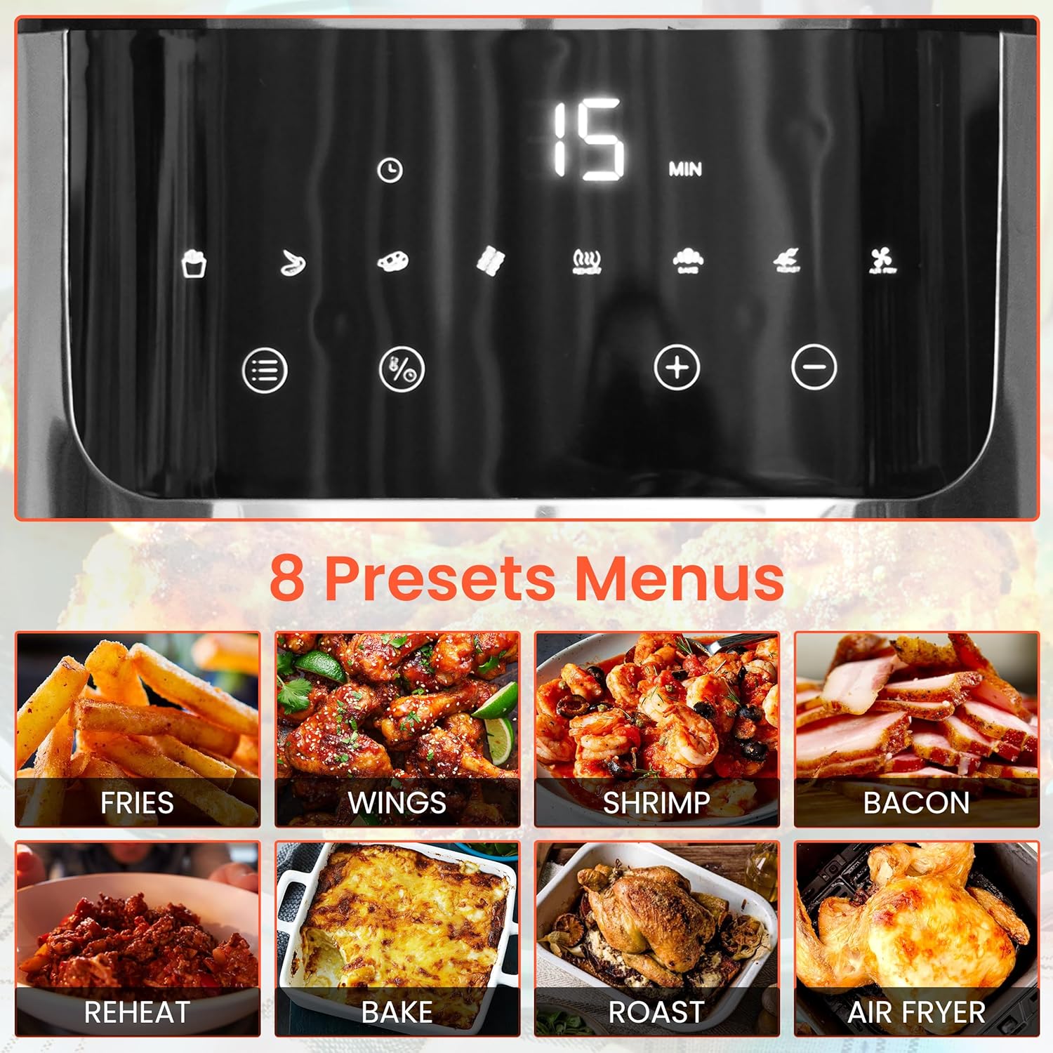8 Preset Menues (Fries, Wings, Shimp, Bacon, Reheat, Roast, Bake, Air Fryer)
