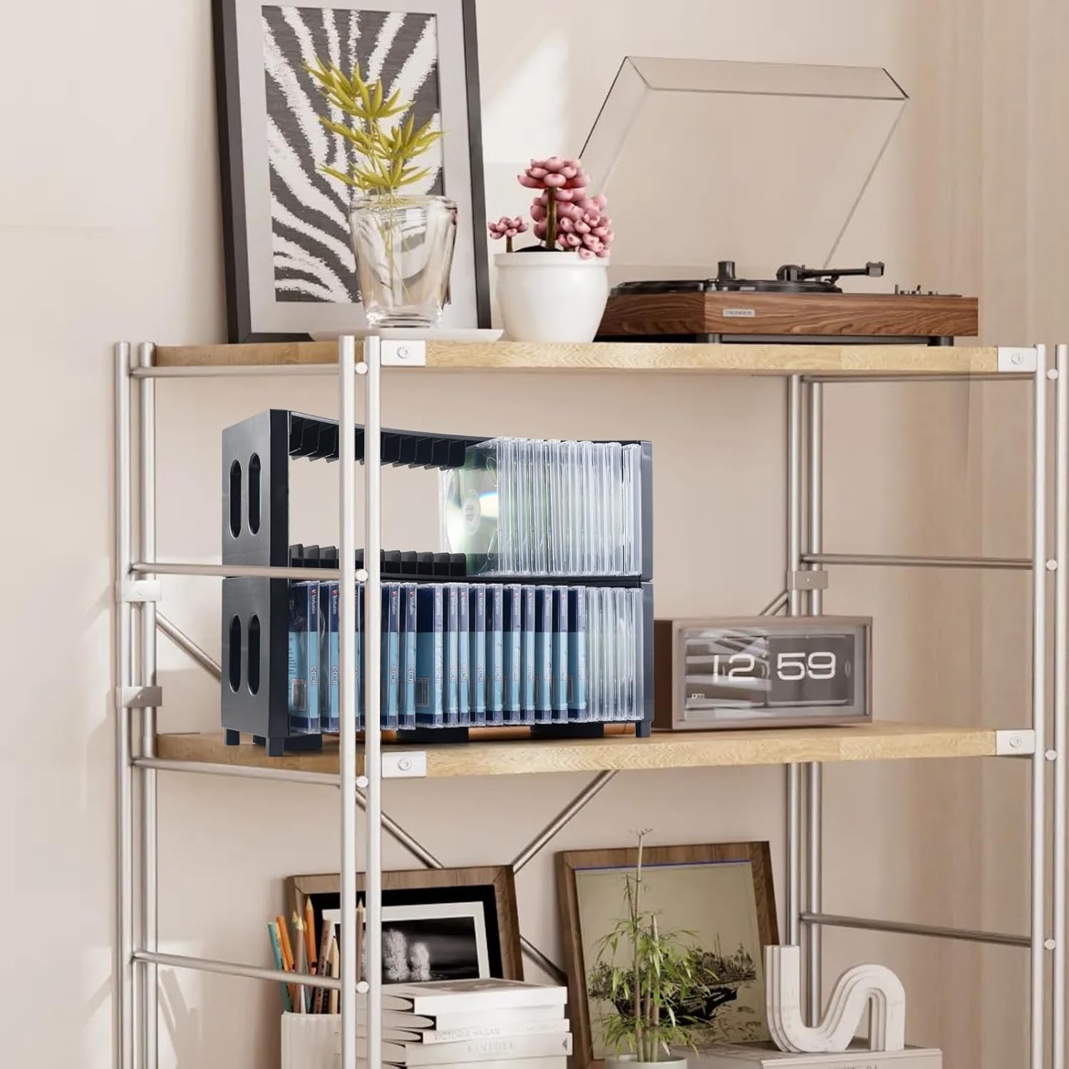 Stackable: cd holder rack can stackable, you can stack up to 6 layers on the top. When stack layers CD rack will still make stable and will not falling. Perfect for organizing your personal music collection in living rooms, bedrooms, or home offices. This convenient design ensures that you can enjoy your music collection effortlessly, making it the perfect addition to your home.