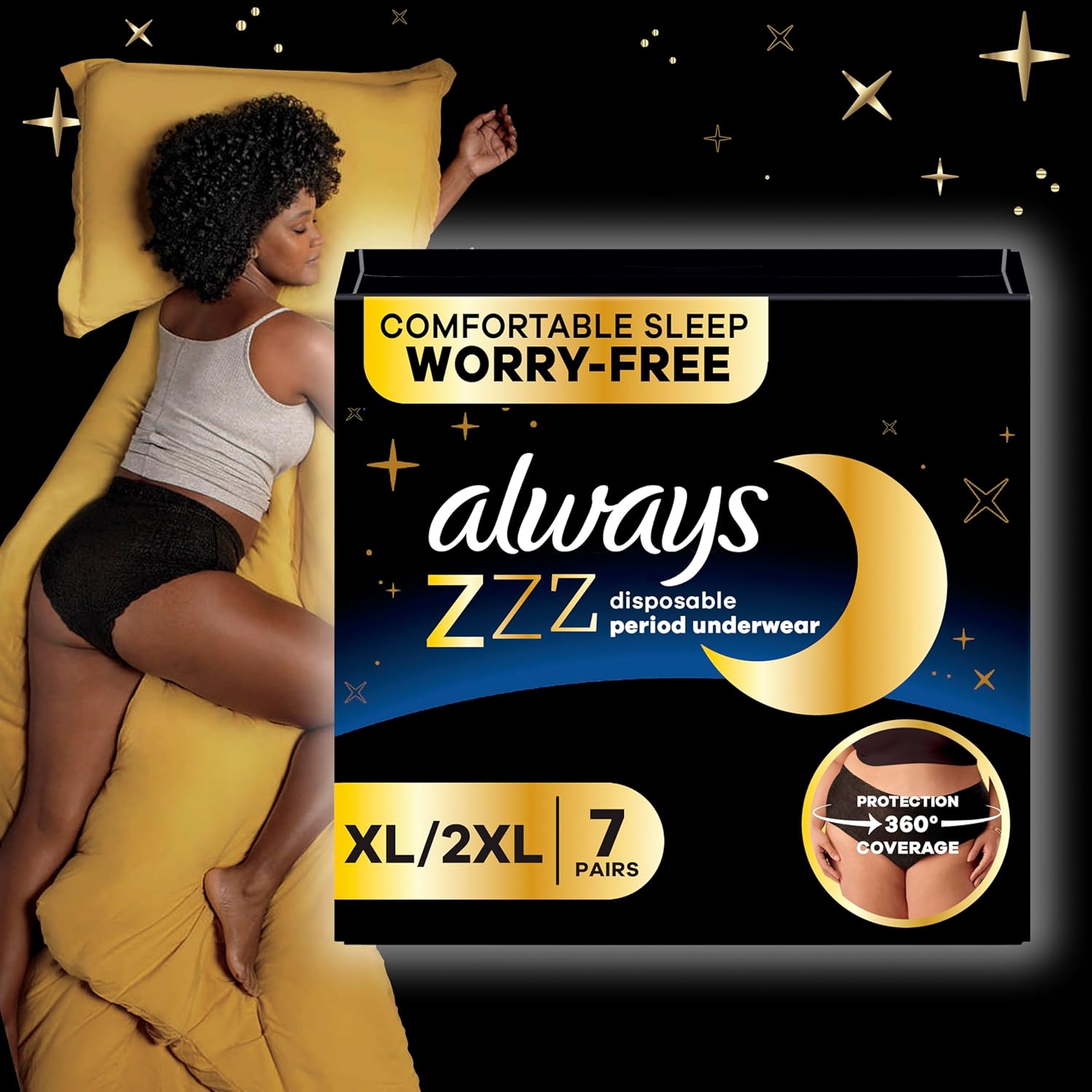 COMFORTABLE SLEEP WORRY-FREE with Always ZZZ Overnight Disposable Period Underwear