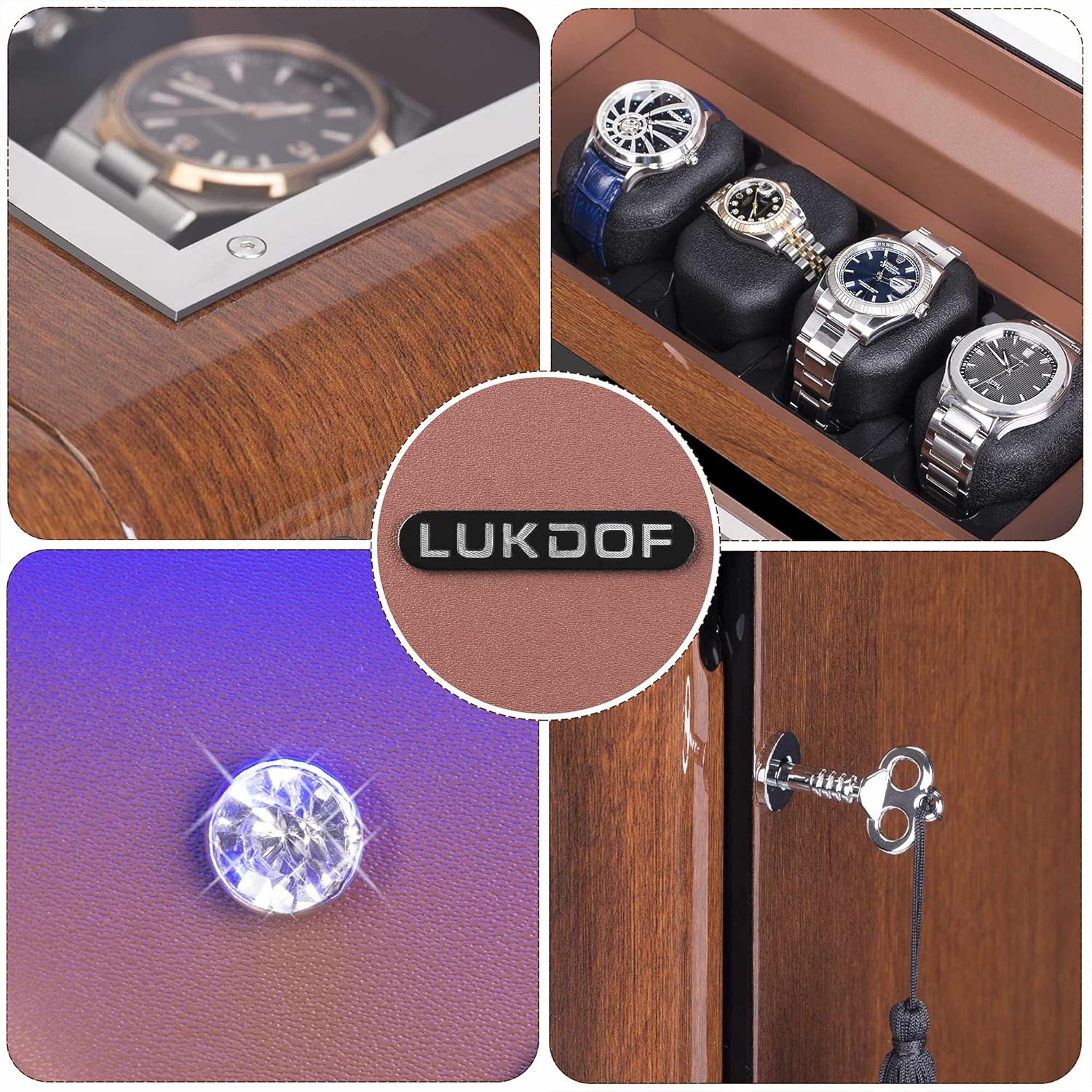 Features a Motor-Stop Option. When you open the door, the rotors stop automatically. Prevents possible breakdowns of the winding mechanism while installing or removing watches.Include a individual key. Just use the key to lock the door to prevent your kids from playing with your watches. The door lock will prevent unwanted access