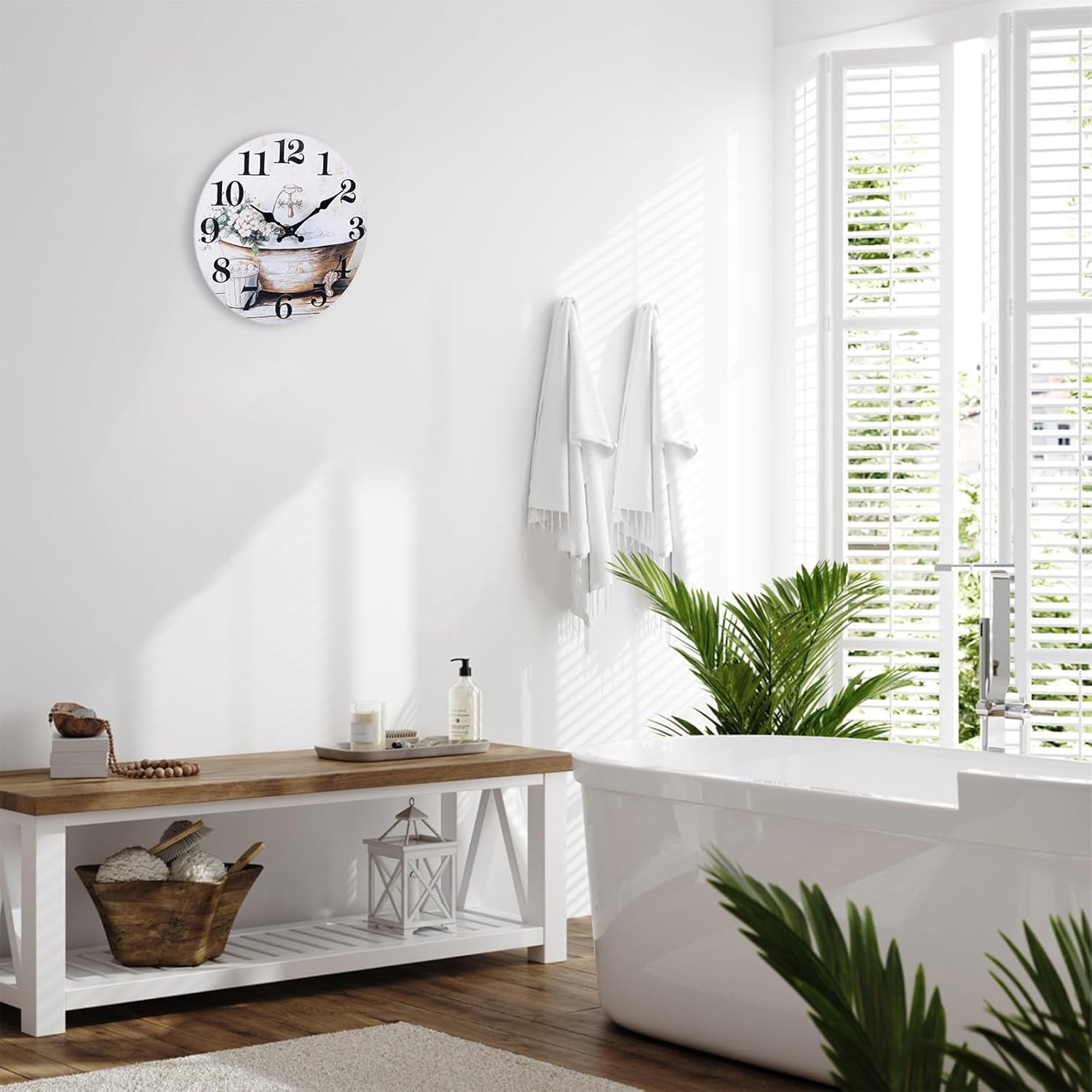 【Rustic Bathroom Wall Decor】This bathroom clock features a unique artistic dial that brings character to your bathroom wall decor.