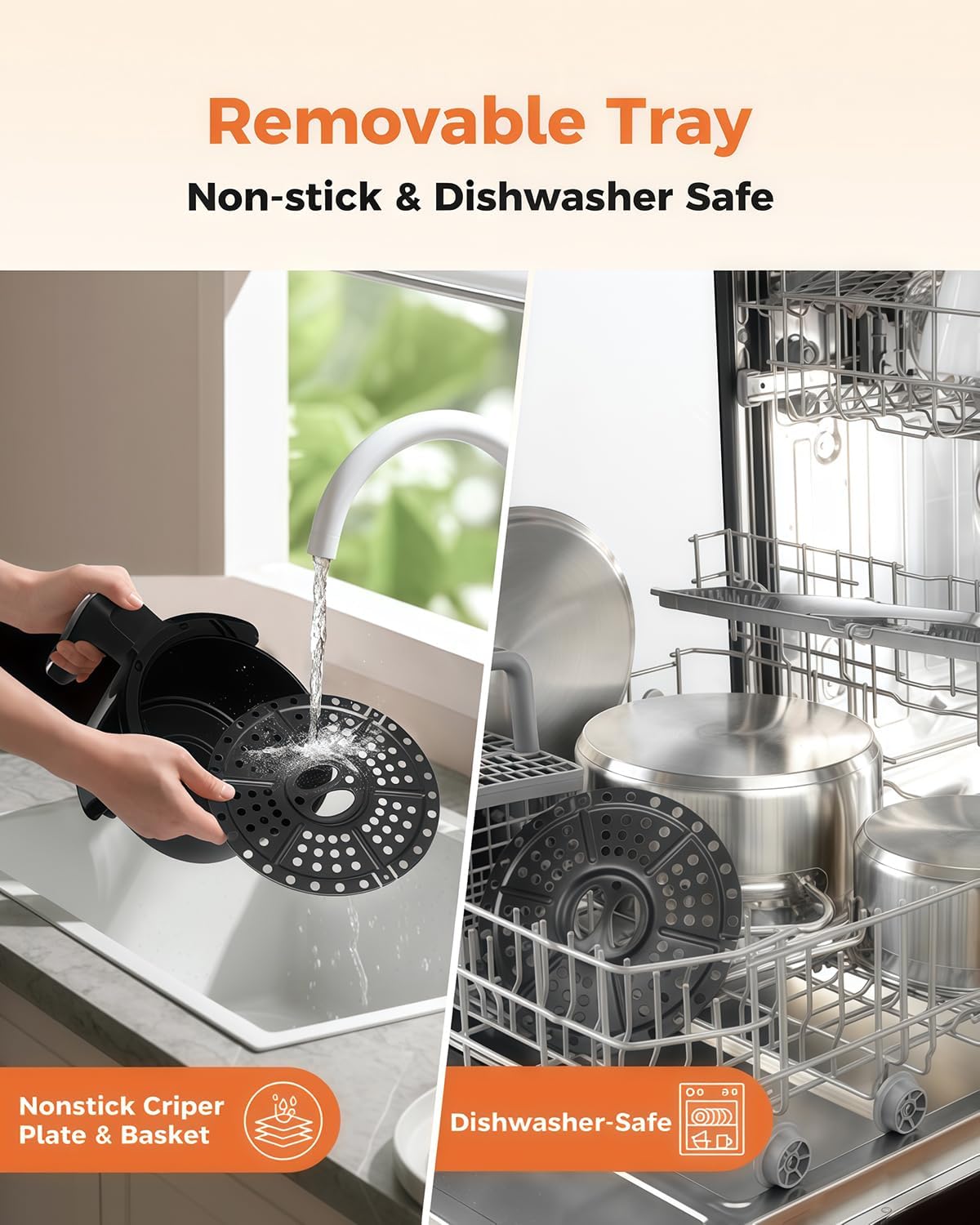 𝐒𝐚𝐟𝐞𝐭𝐲 𝐖𝐡𝐢𝐬𝐩𝐞𝐫-𝐐𝐮𝐢𝐞𝐭 𝐎𝐩𝐞𝐫𝐚𝐭𝐢𝐨𝐧: Whisper-quiet during cooking, paired with a durable usage. Built-in safety features smart pause when basket is moved. Keep your mind at ease and Enjoy crispy meals without disrupting conversations,work or study, ideal for open-concept kitchens