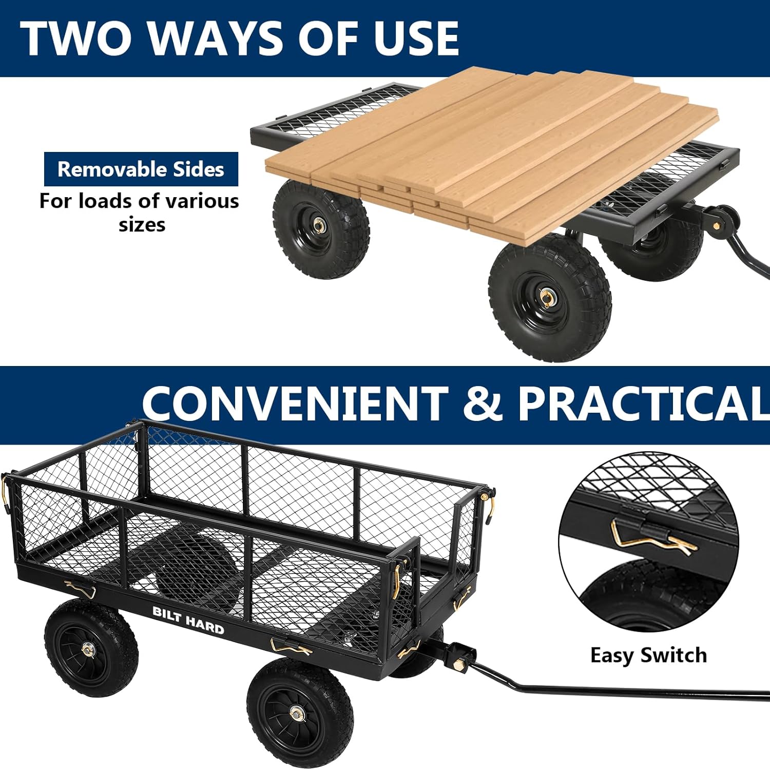 VERSATILE & CONVENIENT – Ideal for various outdoor activities, this yard cart is versatile and reliable for hauling firewood, tools, or other supplies. Ideal for gardens, farms, orchards, and warehouses, this utility cart for yard is designed for practicality and comfort in every task.