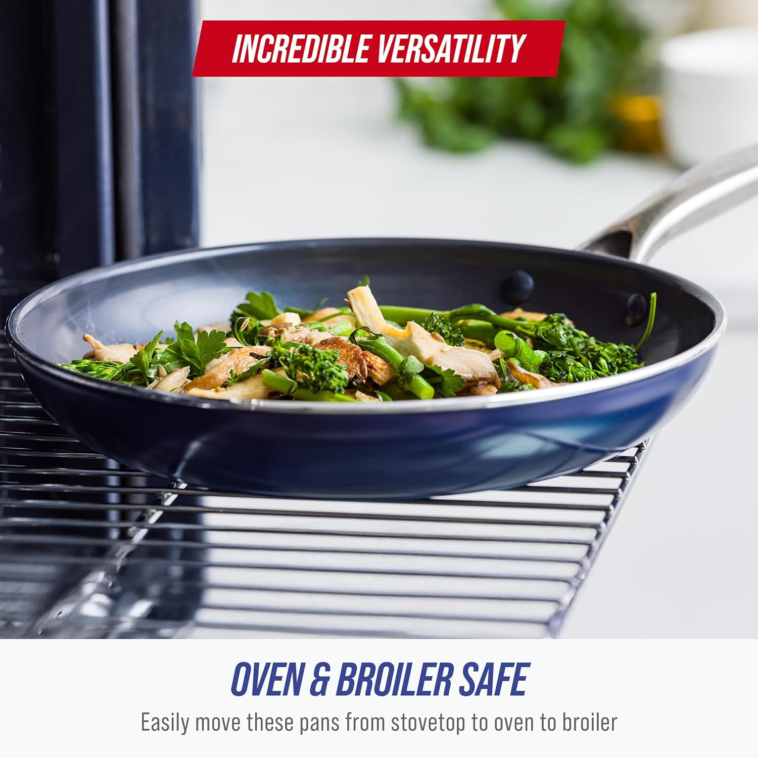 Blue Diamond 12″ Nonstick Frying Pan Skillet, Diamond Infused PFAS & PTFE-Free Ceramic Pot, Dishwasher & Oven Safe, Stay Cool Handle, Durable Non Toxic Metal Utensil Safe, Egg & Omelet Pan, Blue
