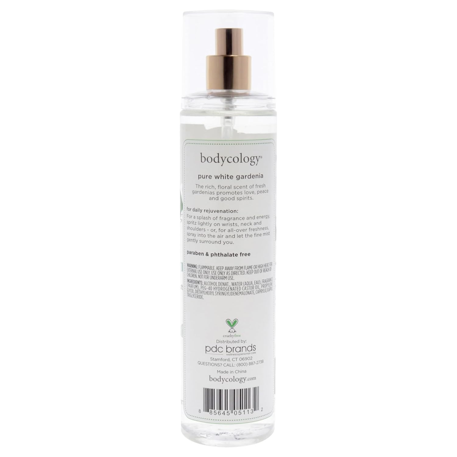 Get ready to immerse yourself in floral, fragrant goodness when you wear the Bodycology Pure White Gardenia Fragrance Mist. With just a spritz or two before your day begins, you can carry the gorgeous scent of orange blossoms, fresh cut tuberose, and white musk with you for hours. Fresh, slightly fruity, and delicate, we created this fragrance with fresh gardenia gardens in mind. Spritz it on your wrists, neck, and shoulders or try spraying the mist into the air and allowing it to fall gently onto your skin. Clean and Floral, this fragrance mist will quickly become a part of your beauty routine. This fragrance mist is the perfect follow-up after moisturizing with our Bodycology Pure White Gardenia Body Cream. Mix and match with our other fragrance mists to create a scent that is uniquely yours. All Bodycology products are paraben, phthalate, and cruelty-free.
