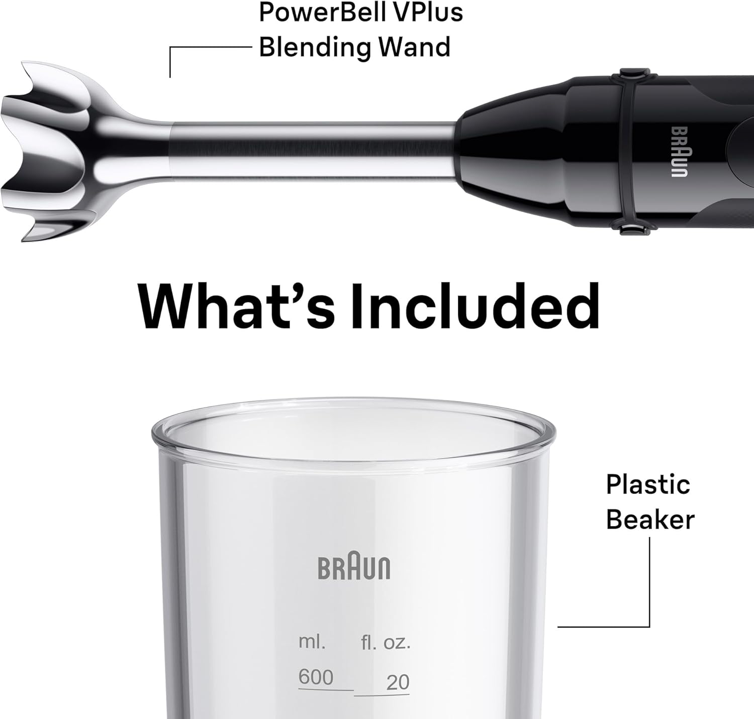 WORLD’S FIRST POWERBELL VPLUS TECHNOLOGY: Get up to 7x finer results * . The unique bell-shaped blending shaft features ultrahard stainless steel blades and 6 inner ribs to create more food-to-blade contact for smoother blending results. * Compared to Braun MQ500