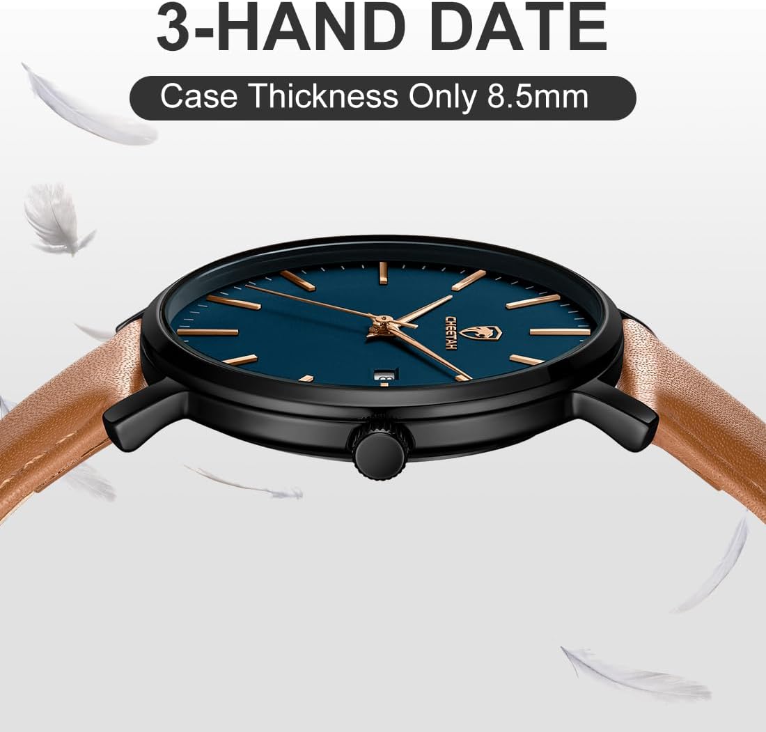 CHEETAH Minimalist Waterproof Quartz Watches for Men with Leather Strap, Auto Date