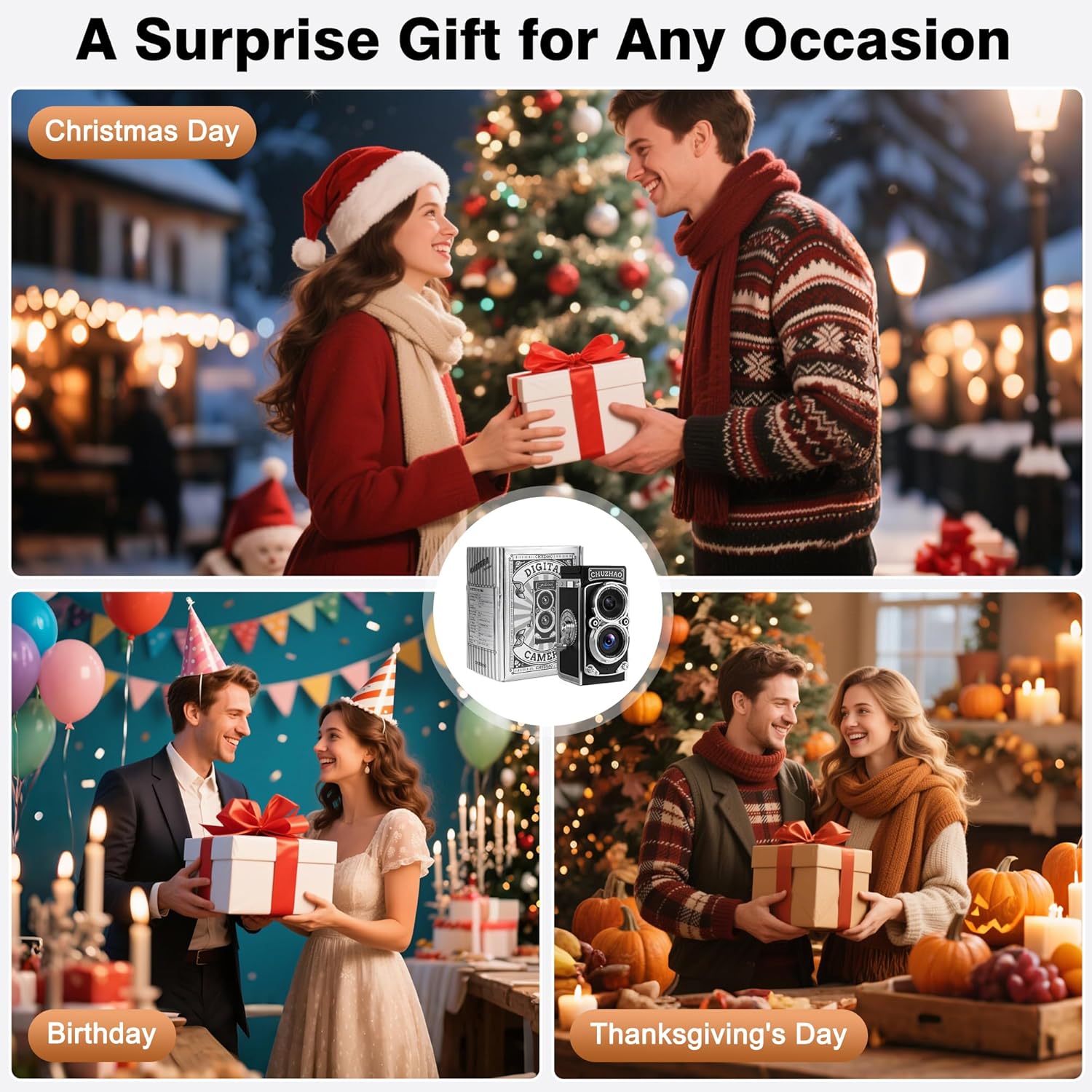 Ideal Gift Choice: The package includes a vintage camera, a SD card, a stylish lanyard, and a Type-C cable, all neatly packed in an exquisite gift box. It’s the perfect gift for boys, girls, and teens on birthdays, Christmas, or any special occasion. It will bring a lot of joy and record lasting memories