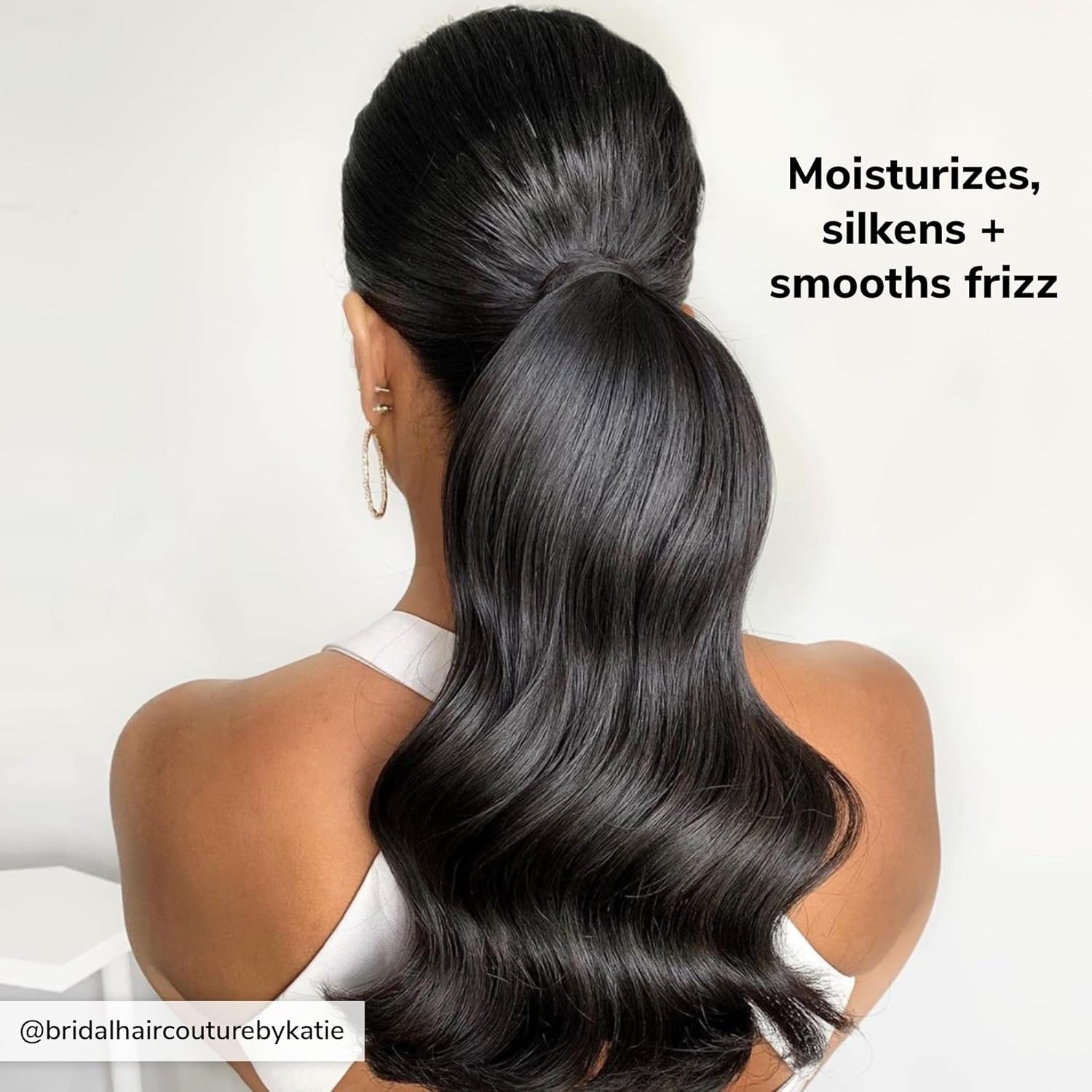 Smoother + silkier strands, mega moisture, renewed elasticity, heat protection