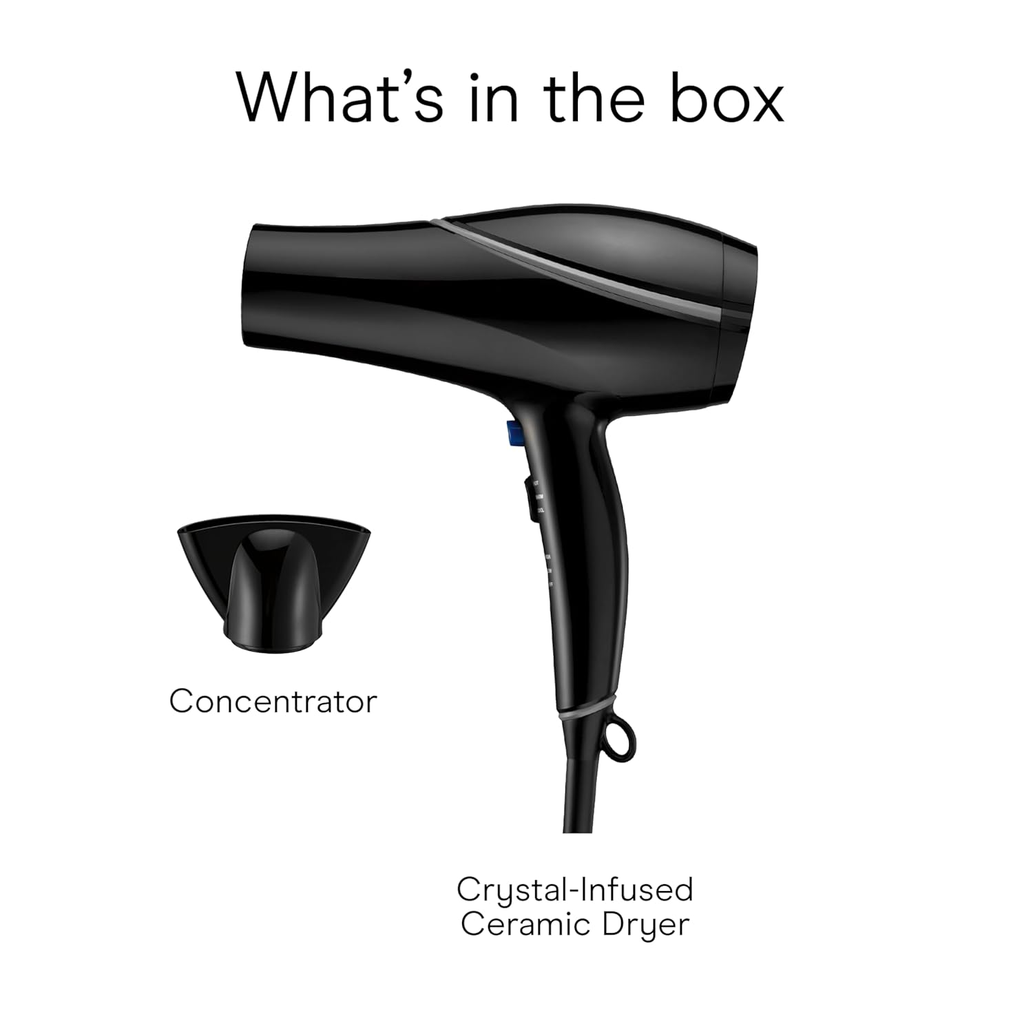 Conair Hair Dryer Style & Shine Natural Crystal Collection, 1875W Hairdryer, 3 Heat Settings, 2 Speeds, Blow Dryer with Concentrator Attachment, Ionic & Hematite-Infused Ceramic Technology, Black