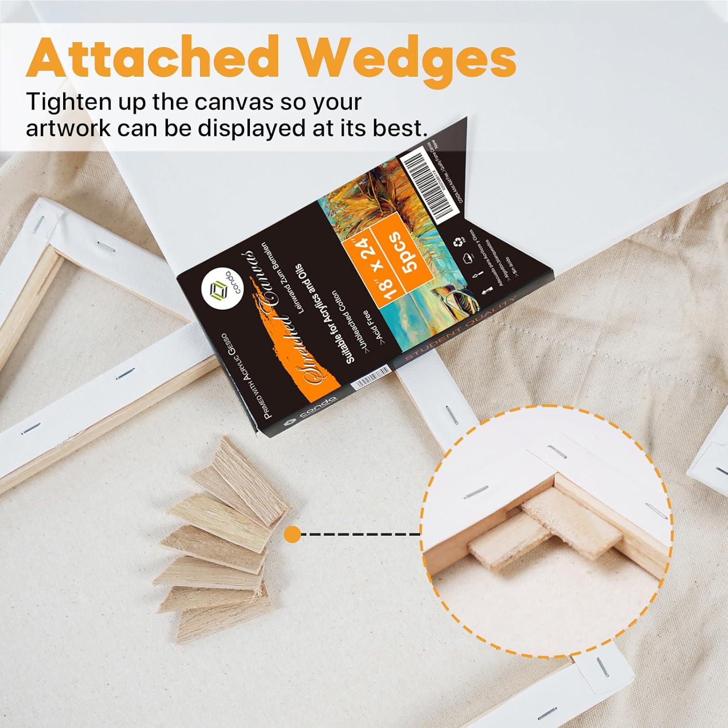 CONDA 18×24 inch Stretched Canvas for Painting, 5 Pack Large Canvas, 100% Cotton, 5/8 Inch Profile Big Stretched Canvas Value Bulk Pack for Acrylics, Oils Painting