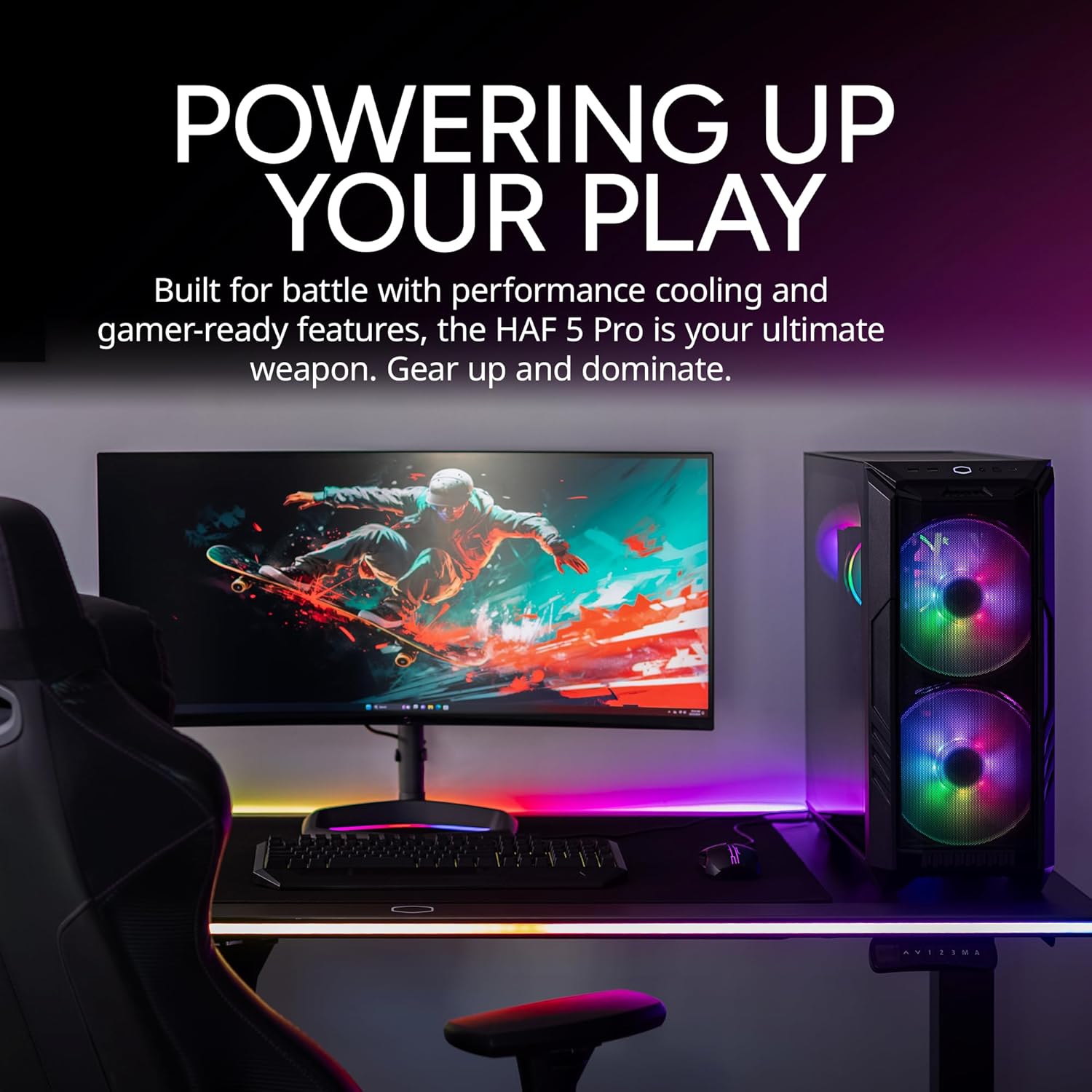 MAXIMUM PERFORMANCE: HAF 500 ARGB Case | Hyper 212 Halo ARGB Air Cooler | 200mm ARGB Fans | 650W 80+ Gold Efficiency Power Supply, unlocks your system to its full cooling & gaming potential