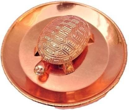 Copper Fengshui Tortoise/Vastu Turtle with Plate for Good Luck Fengshui Vastu Shastra Decorative Showpiece 4 Inch (9 cm) Kachua Plate vastu