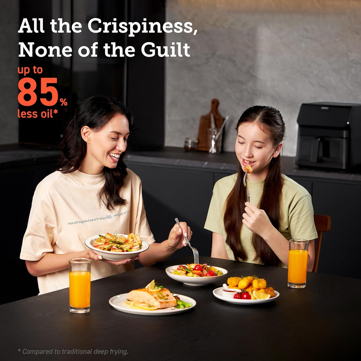 Healthy Meal: Air fry with 85% less oil than deep frying for healthier, guilt-free meals.