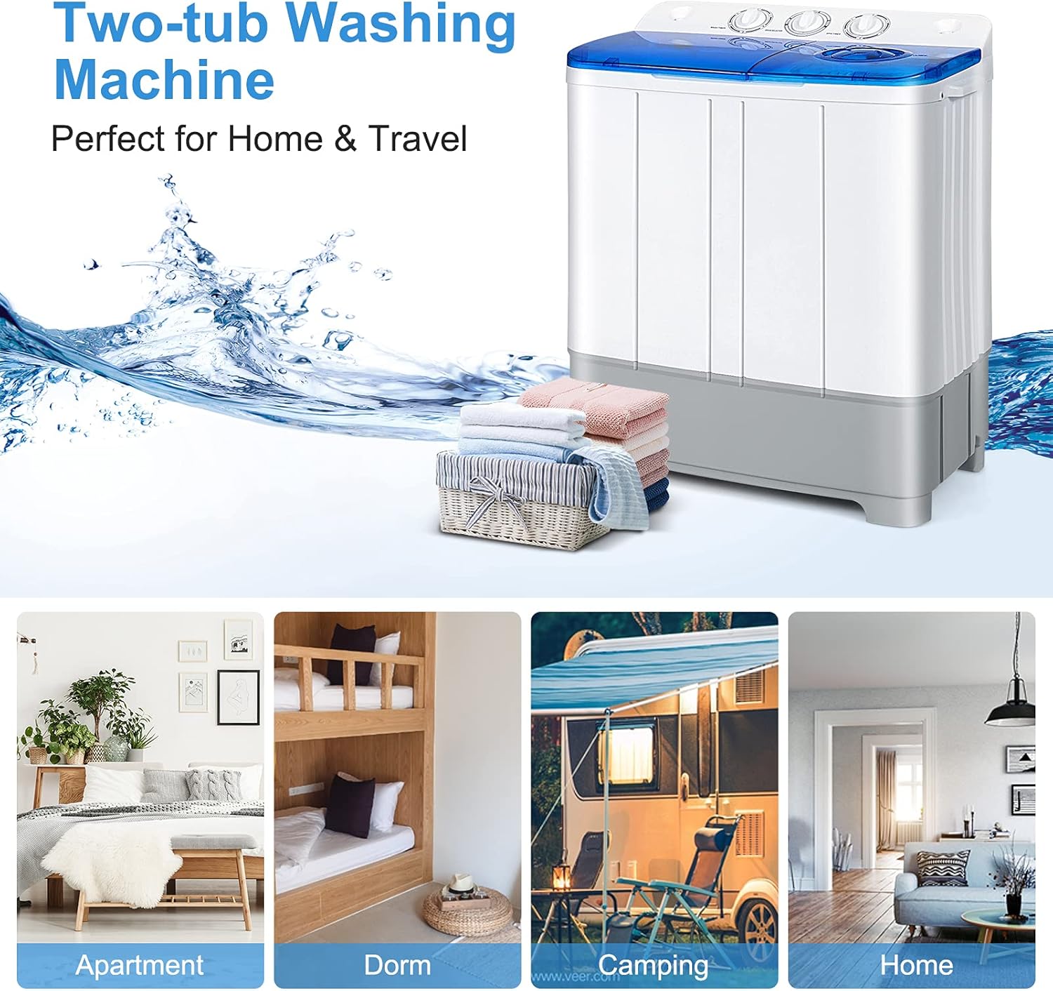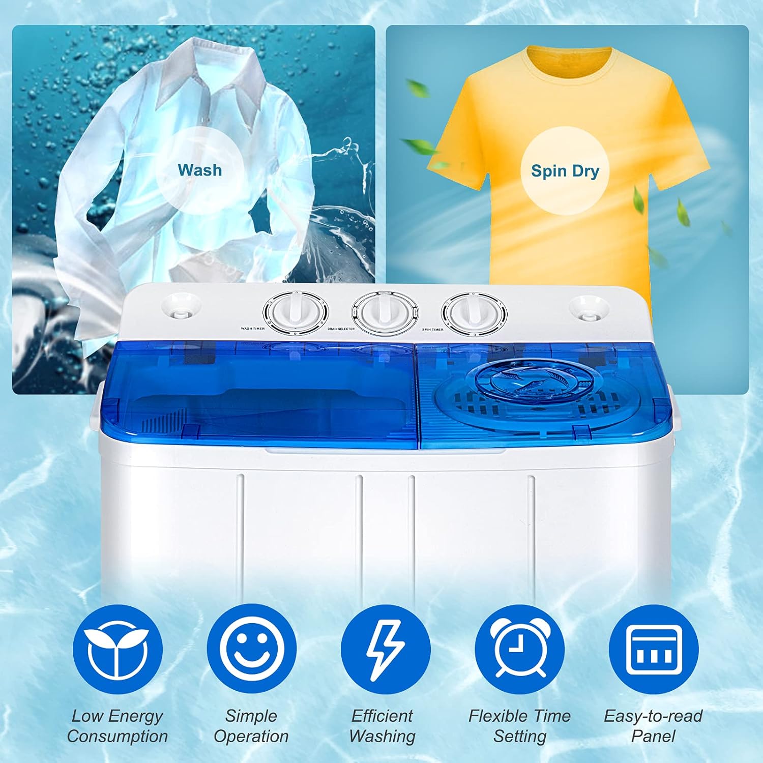 [Easy to Drain & Use:]The excellent drain pump and 54” drain hose bring a lot of convenience in draining excess dirty water. And the filter device prevents the drain outlet from being blocked by unnecessary debris. Just drop clothes in, add laundry detergent, fill with water, set the timer, and you can start washing your clothes.