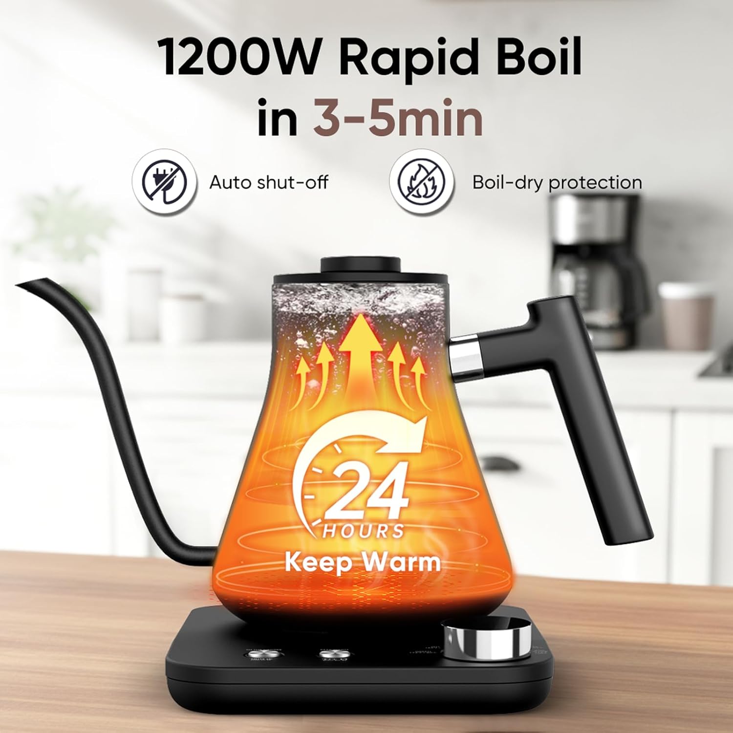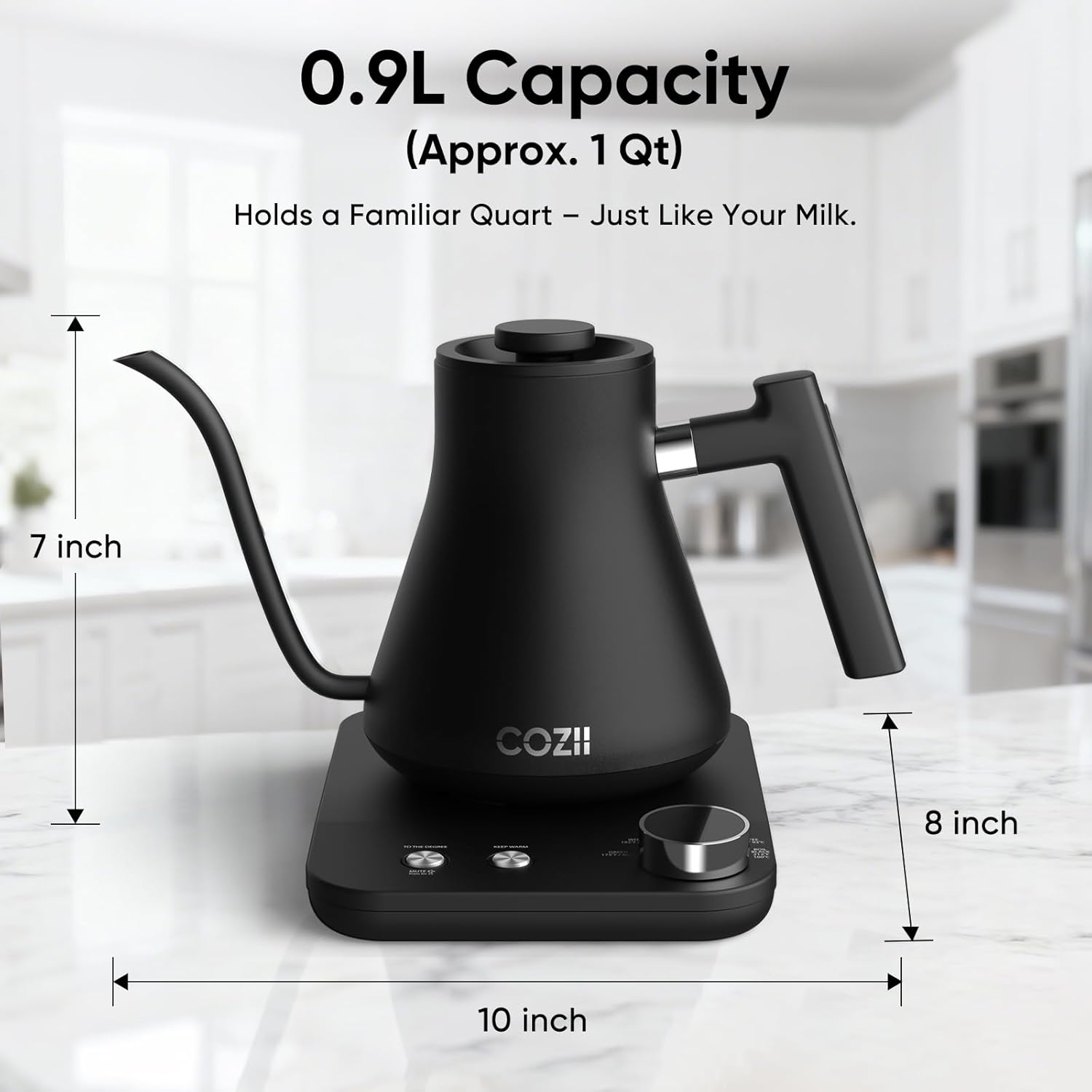 COZII Gooseneck Electric Kettle with ±1°F Temperature Control, 1200W Quick Heating for Pour Over Coffee & Tea, 0.9L Water Boiler with 24H Keep Warm & Auto Shut Off, Stainless Steel Interior, Black
