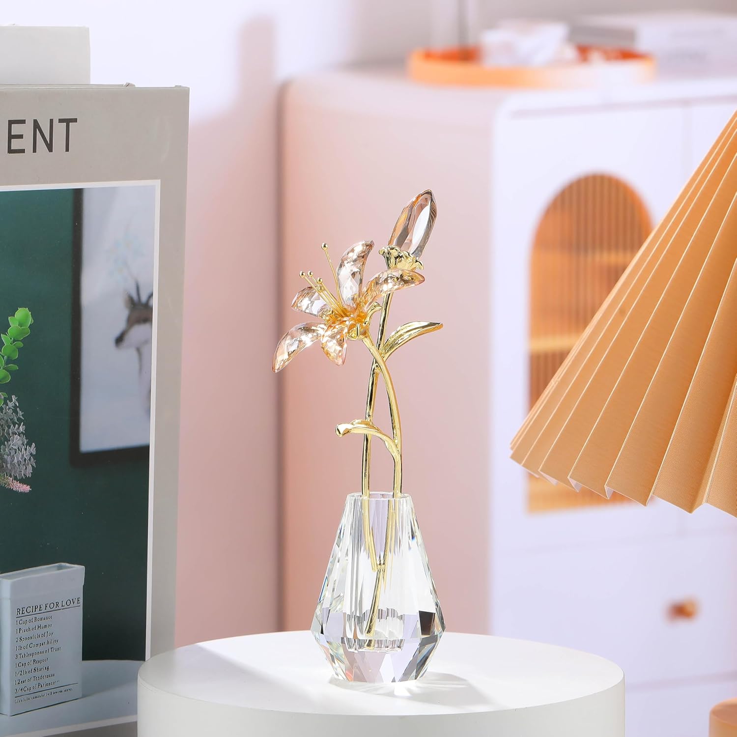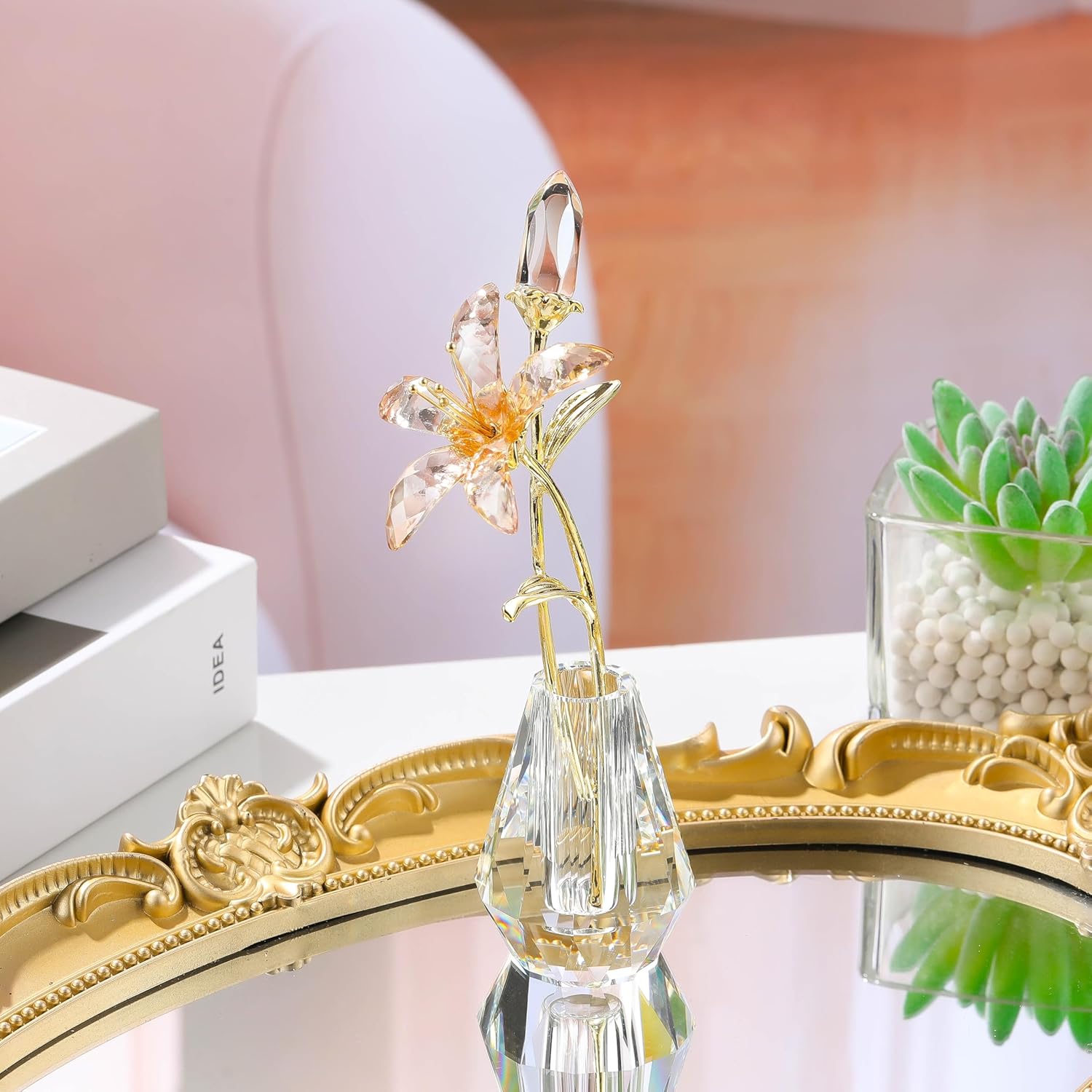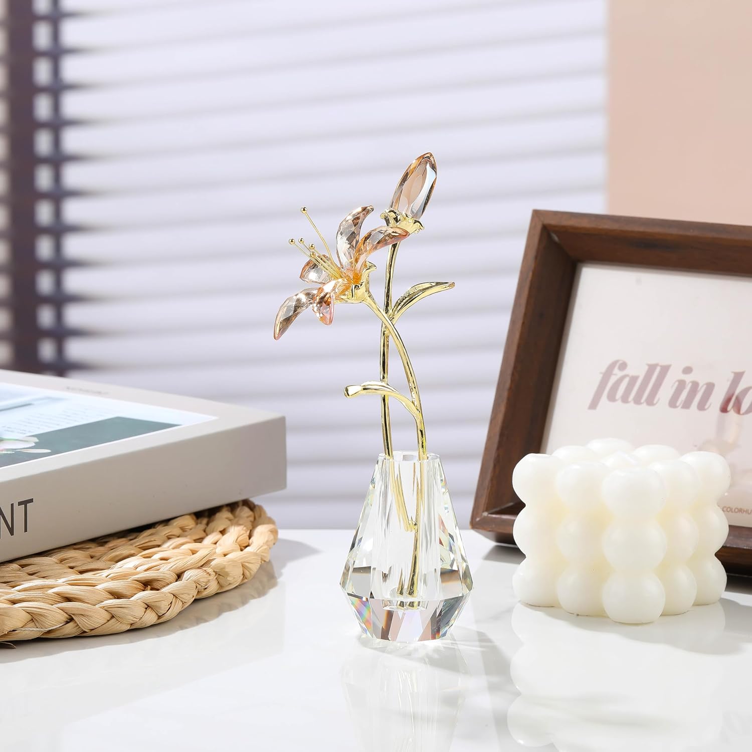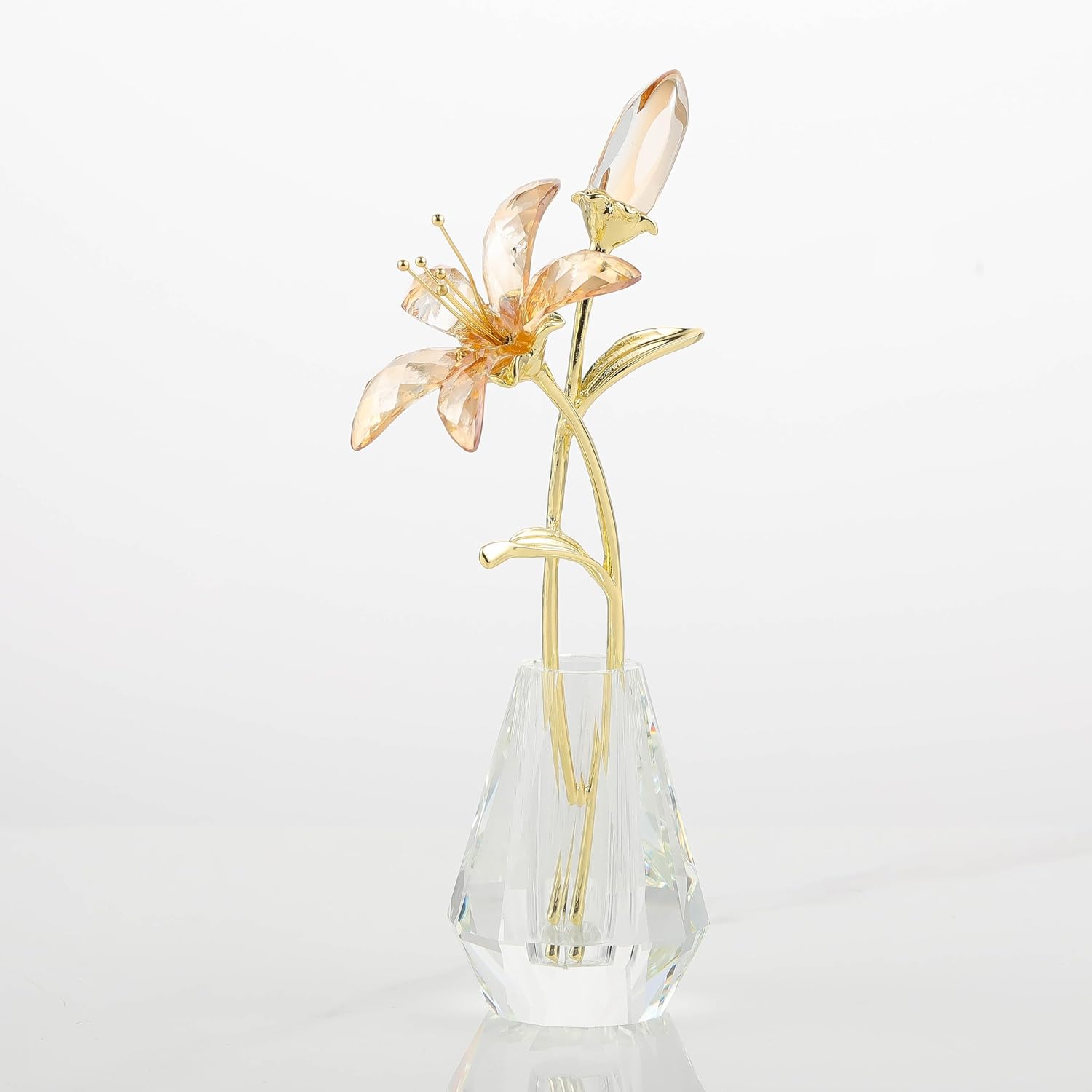 Crystal Lily Flower Figurine with Stems, Champagne Handmade Collectible Statue for Decoration Mothers Day, Centerpiece Day Bridal Shower Gift
