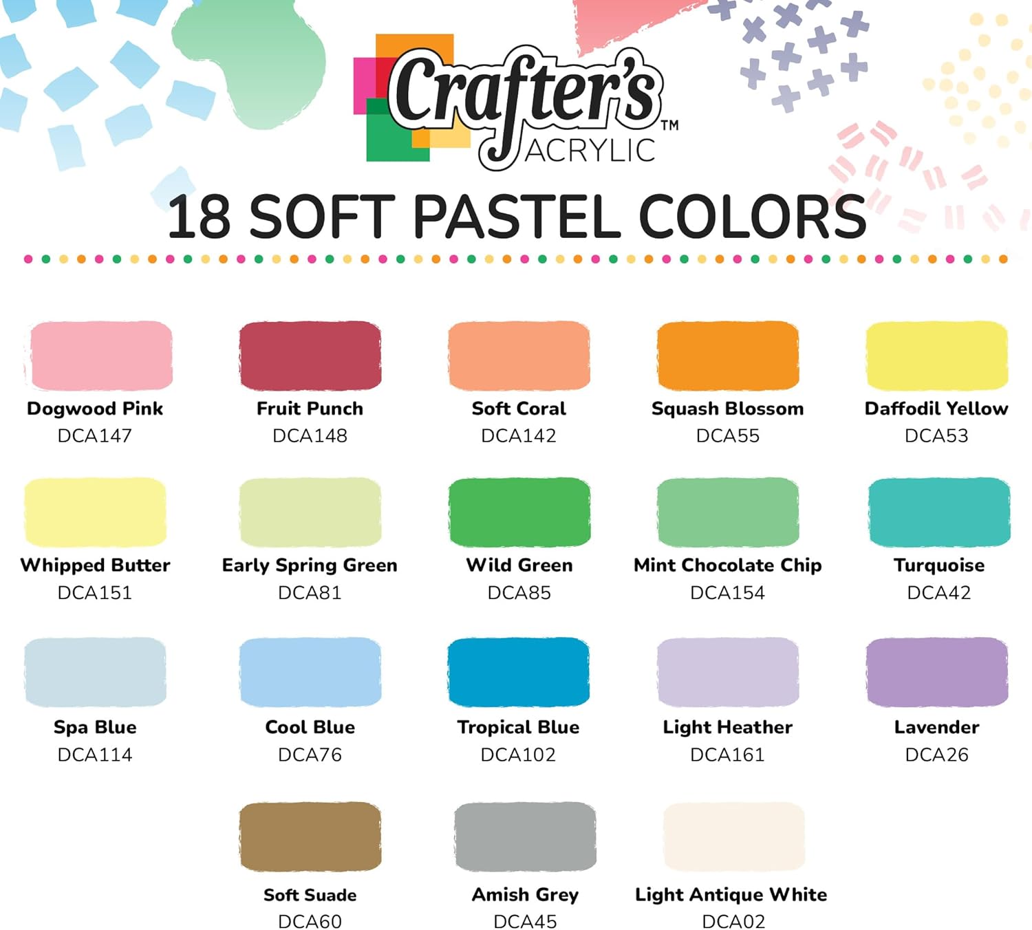 18 POPULAR COLORS – This set includes 18 of our most popular Crafter’s Acrylics Pastels paint colors: