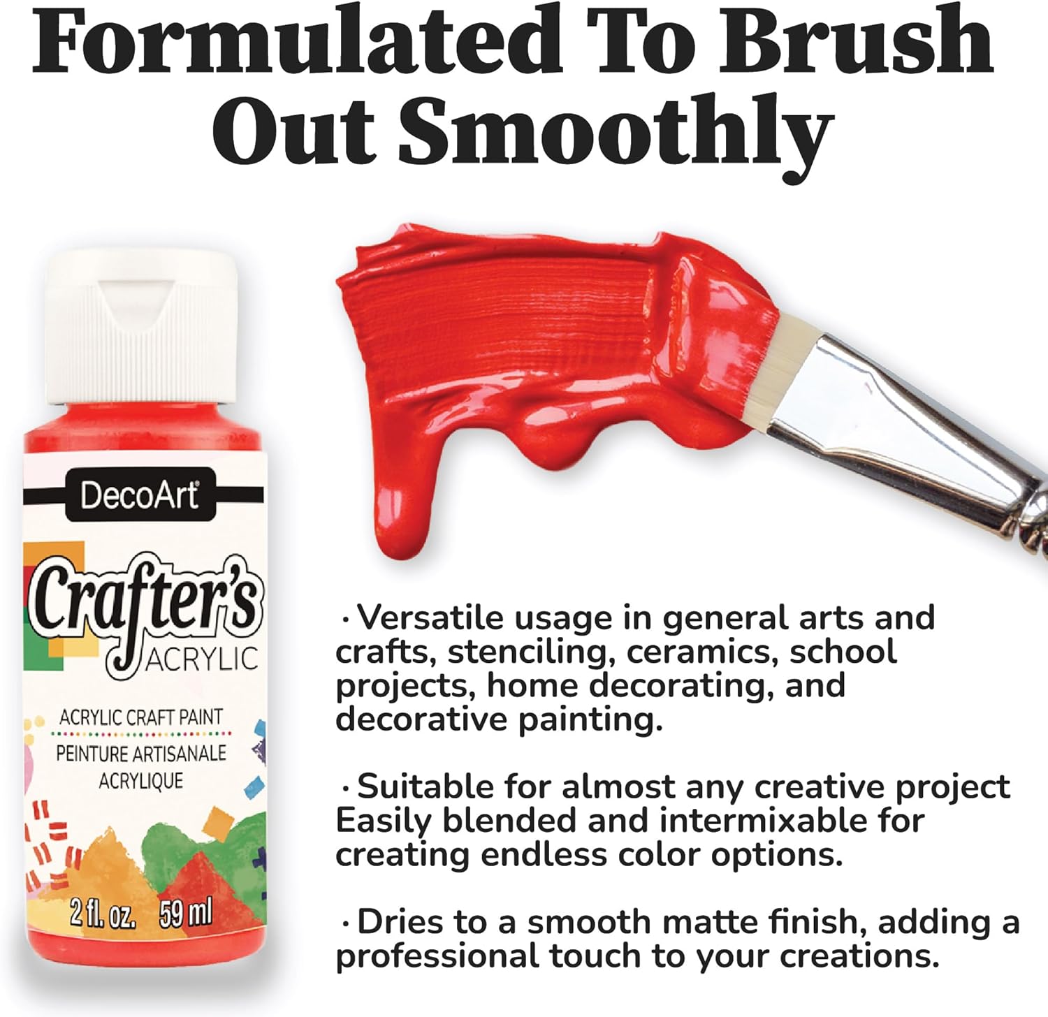 MATTE FINISH – Each of these colors dries to a durable matte finish – perfect for all your arts and crafts projects. This versatile acrylic paint can be brushed, stamped, sponged or stenciled – a truly versatile paint!