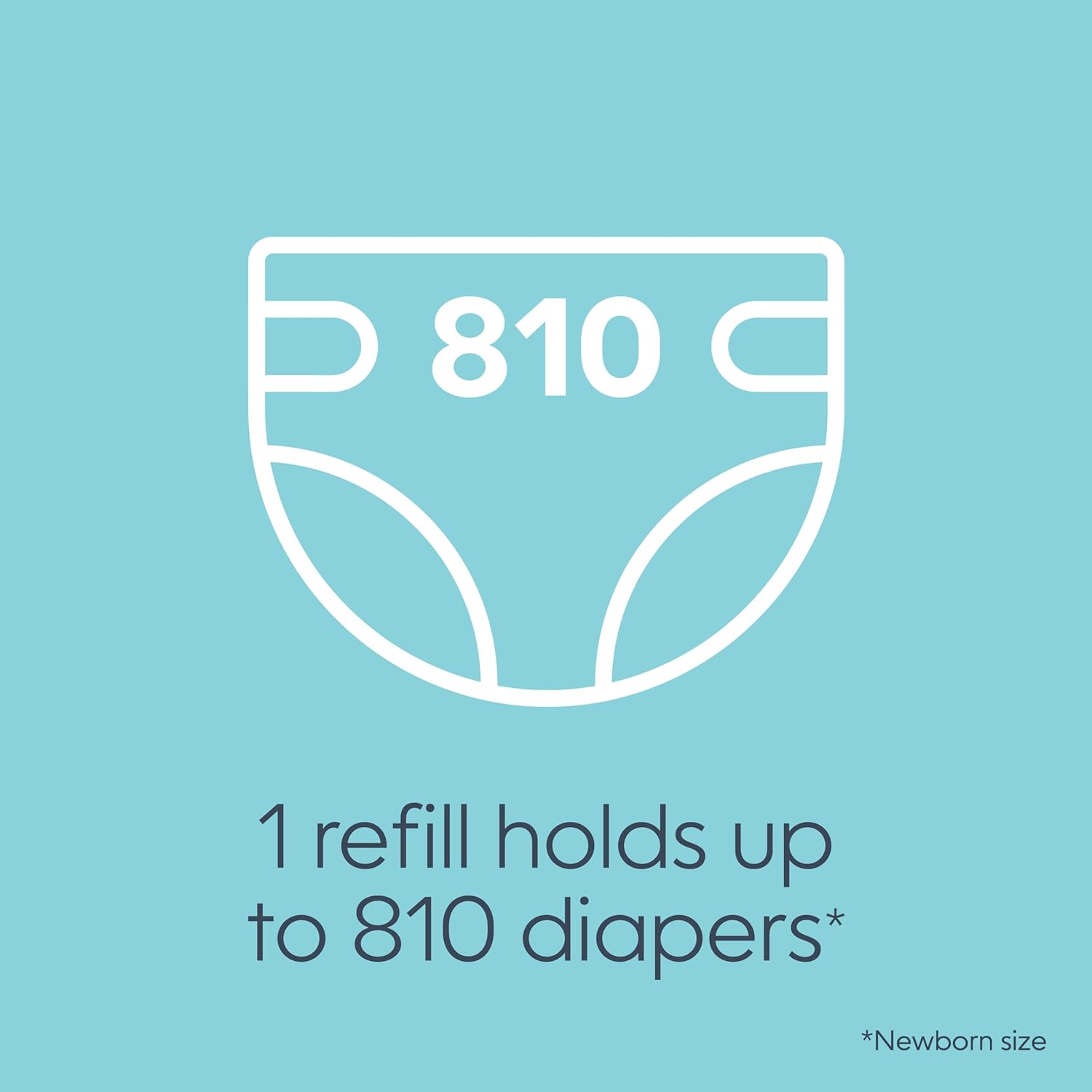 BEST VALUE: each continuous Jumbo square refill has the capacity to hold up to 810 newborn-sized diapers meaning fewer trips to the trash.