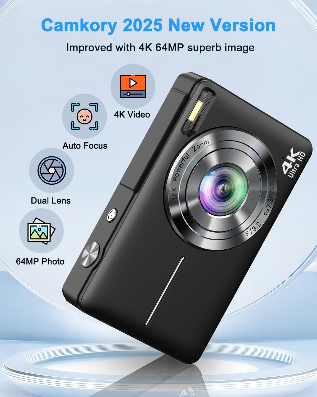 【Camkory 4K 64 MP Digital Camera】The point and shoot digital camera delivers incredible detail and vibrant, true-to-life colors with 4K Ultra HD video and 64MP photos. Even a beginner can get stunning images, making it perfect for preserving cherished memories from events, vacations, parties, and everyday life.