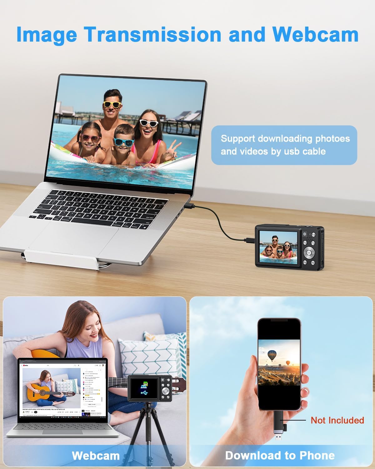 【Multi-Functional & Easy File Transfer】Packed with creative options, the camera for photography supports anti-shake, 16X zoom, time-lapse, slow motion, continuous shooting, white balance, ISO adjustment, filters, and metering. Connect via USB to use it as a high-quality webcam for live streaming, or switch to MSDC mode for fast image transfer to your computer.