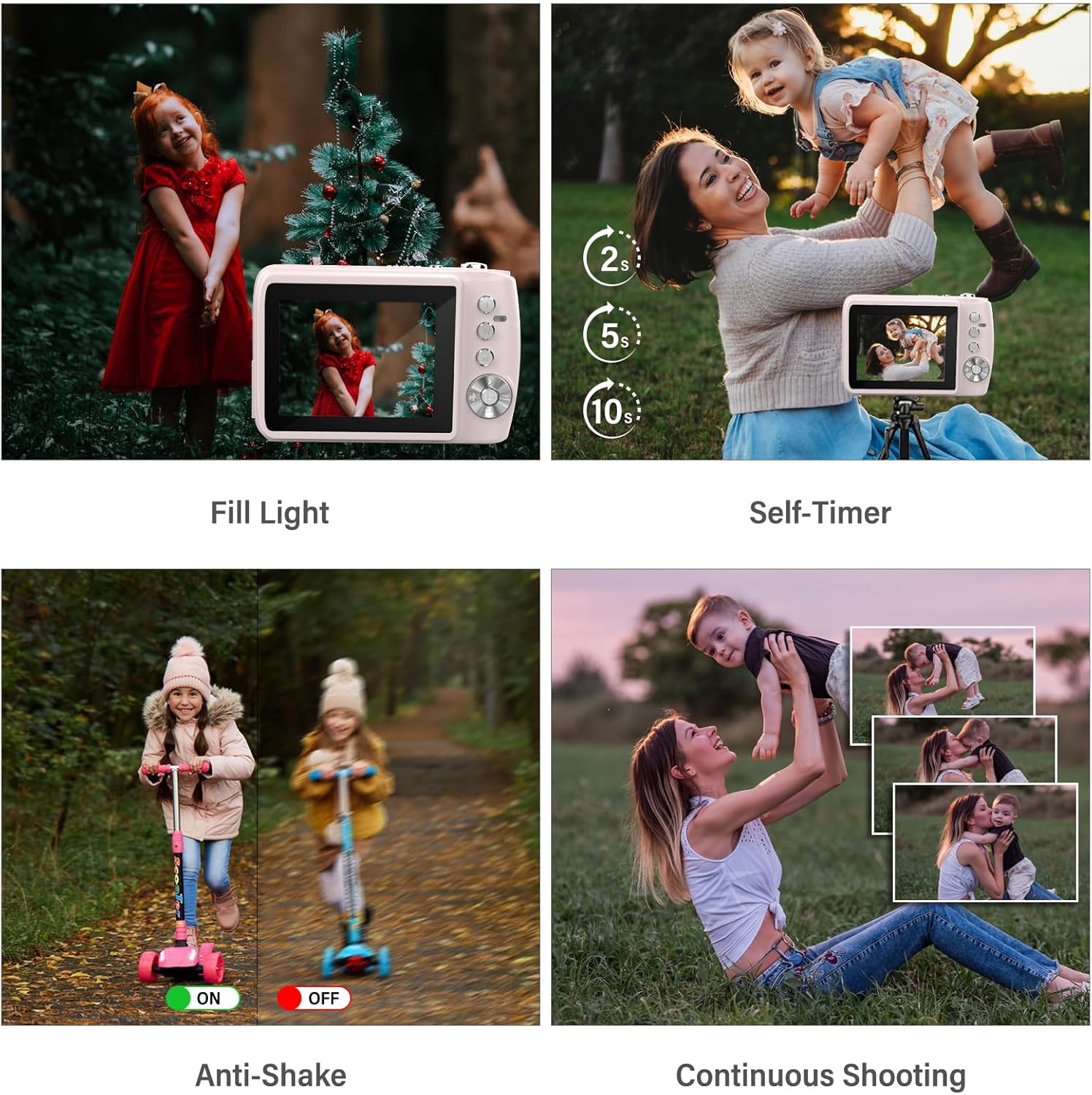 【Smart Autofocus + Creative Shooting Unleashed】 With intelligent autofocus, this Digital Camera locks onto subjects effortlessly at birthday parties, sports events, Outdoor play, pet interaction, or any scene—full-press to capture crisp, clear moments. Beyond auto-mode, explore 16X zoom for distant details, 9 creative modes (sports/nighttime, etc), anti-shake, face/smile detection, burst shooting. Let kids switch up styles on the fly, turning every shot into a creative adventure—no limits to how they tell their stories.