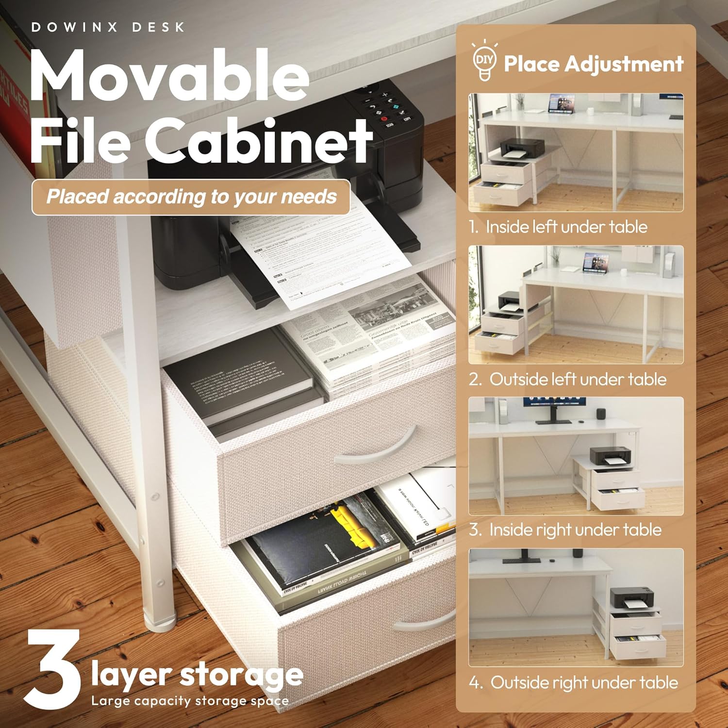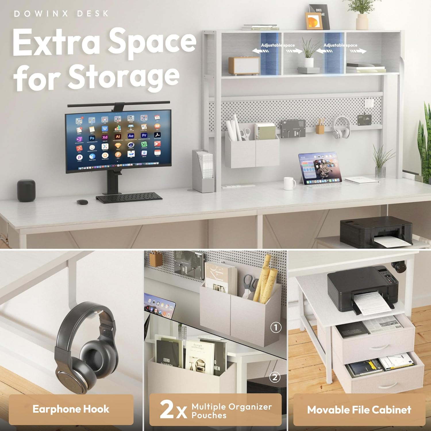 Dowinx 67” L-Shaped Gaming Desk with Pegboard & Drawers, Reversible Computer Desk with RGB Lights & Power Outlets, Corner Workstation with Storage & Hutch for Home Office & Gaming White