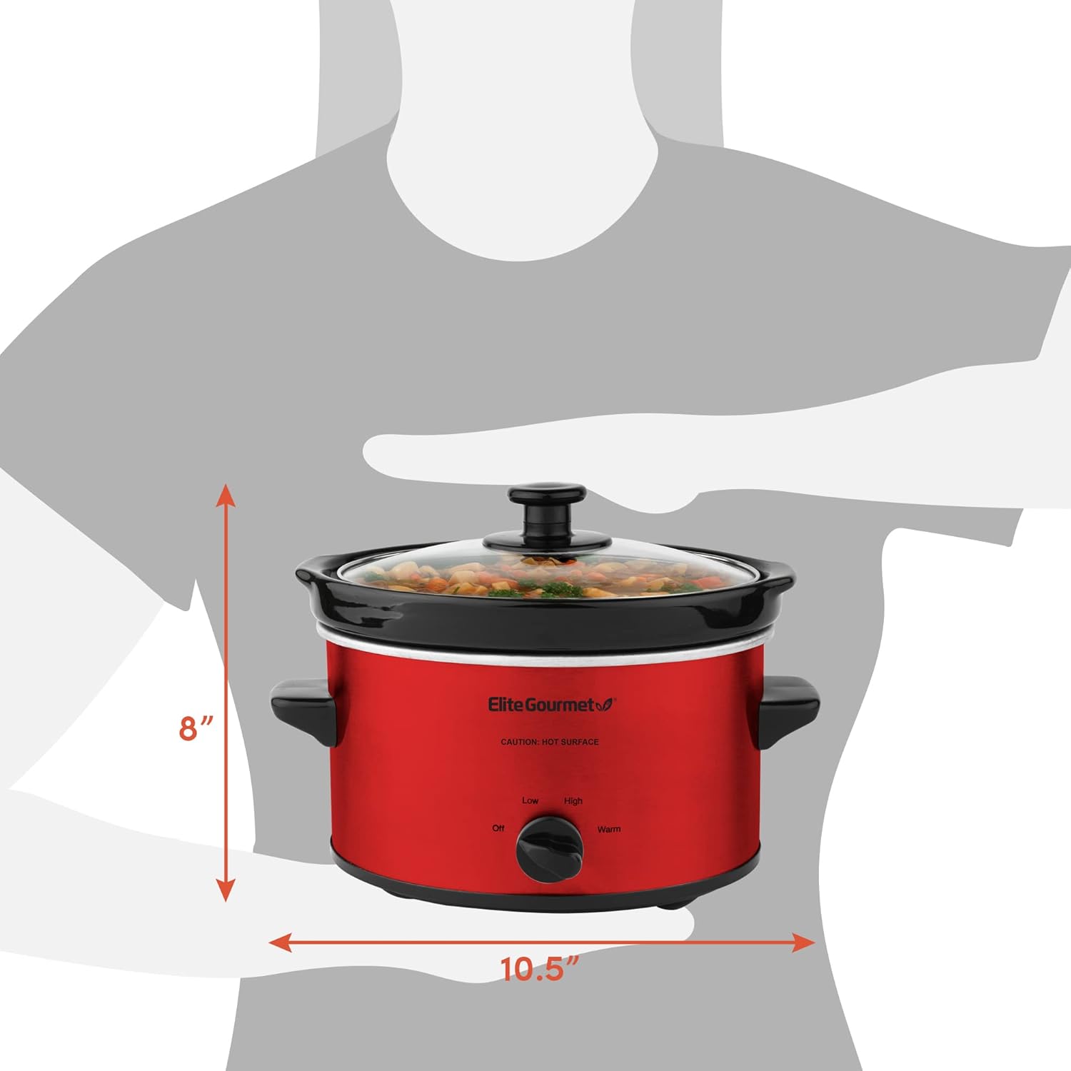 Elite Gourmet MST-275XR Electric Oval Slow Cooker, Adjustable Temp, Entrees, Sauces, Stews & Dips, Dishwasher Safe Glass Lid & Crock (2 Quart, Metallic Red)
