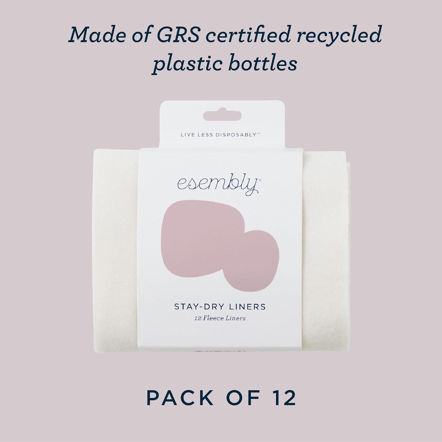 All in the Details: We’re turning trash into treasure! Esembly Stay-Dry fleece liners are made of recycled plastic bottles! You get a pack of 12, measuring 5”x12”. If you prefer natural fibers against babies skin, just stick with the organic cloth inners (sold separately).