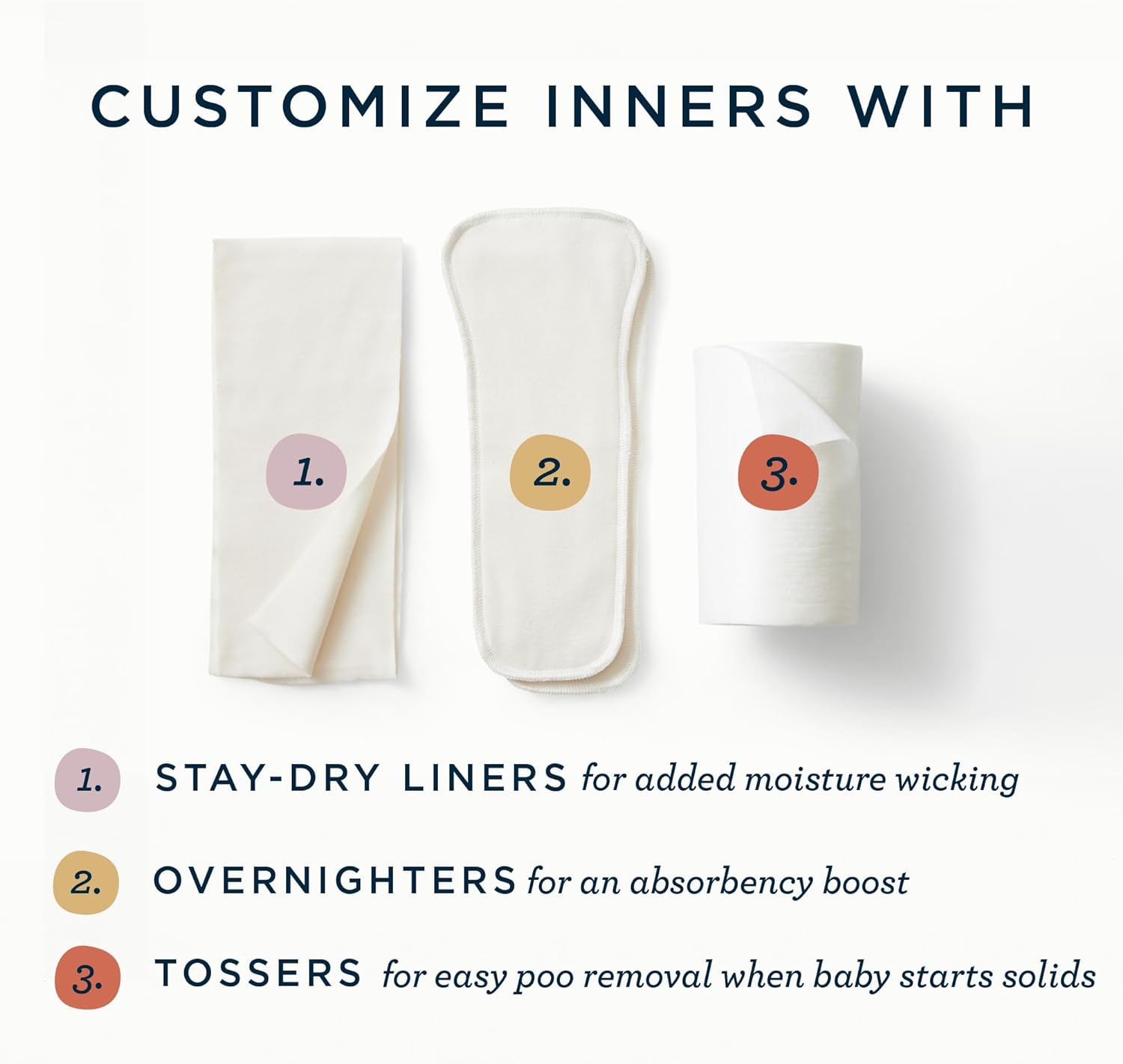 Optional Add On: Line your Esembly Inner (sold separately) or other cloth diaper with a fresh Stay-Dry Liner any time a moisture-wicking layer is desired – great to help keep heavy-wetters and the extra-sensitive tush dry. Wash and dry Stay-Dry Liners right along with your Esembly diapers on laundry day.
