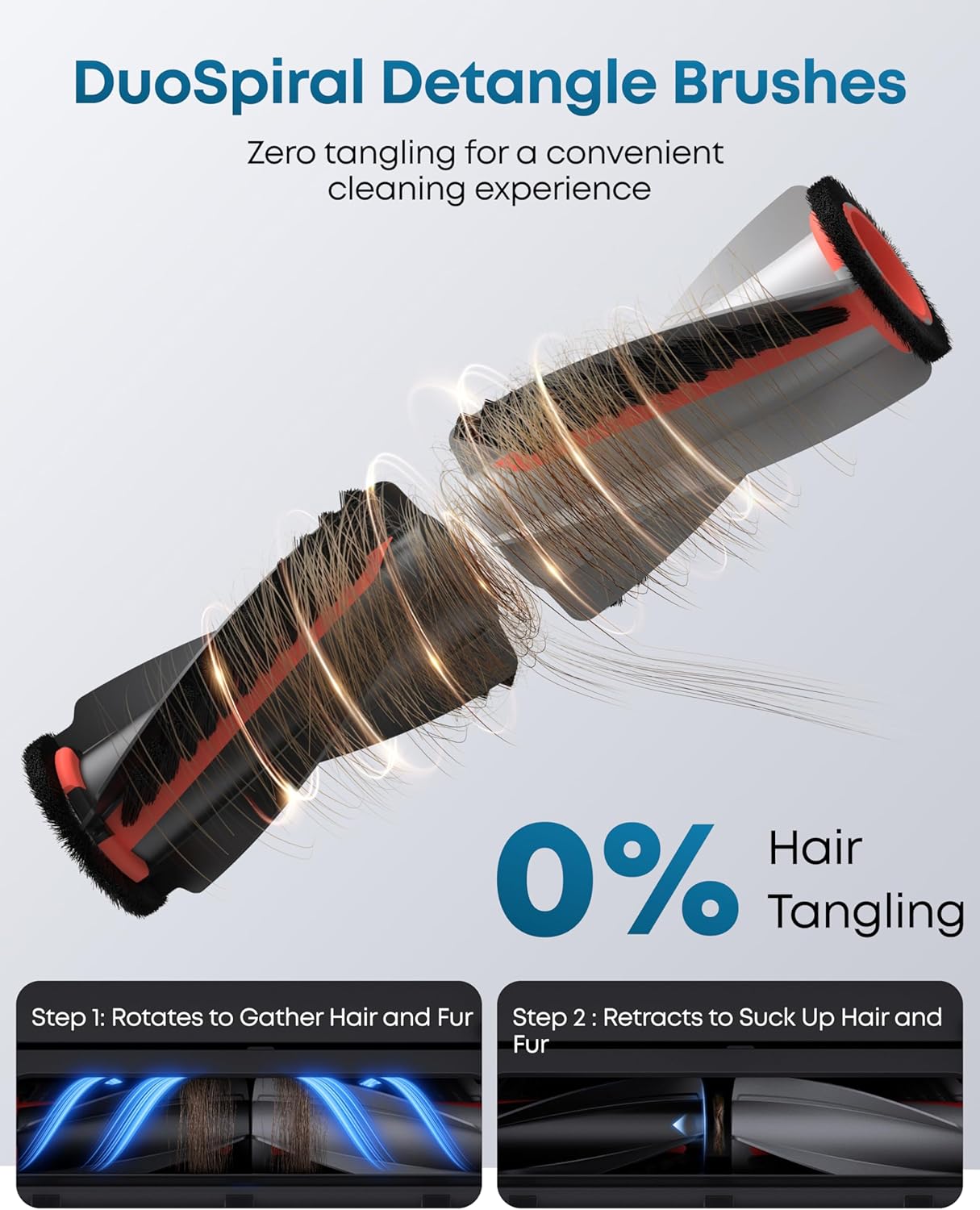 DuoSpiral Anti-Tangle Brushes for Enhanced Pet Hair Management: Designed to prevent hair and fur from tangling, reducing clogs and minimizing manual cleanup—perfect for households with pets.