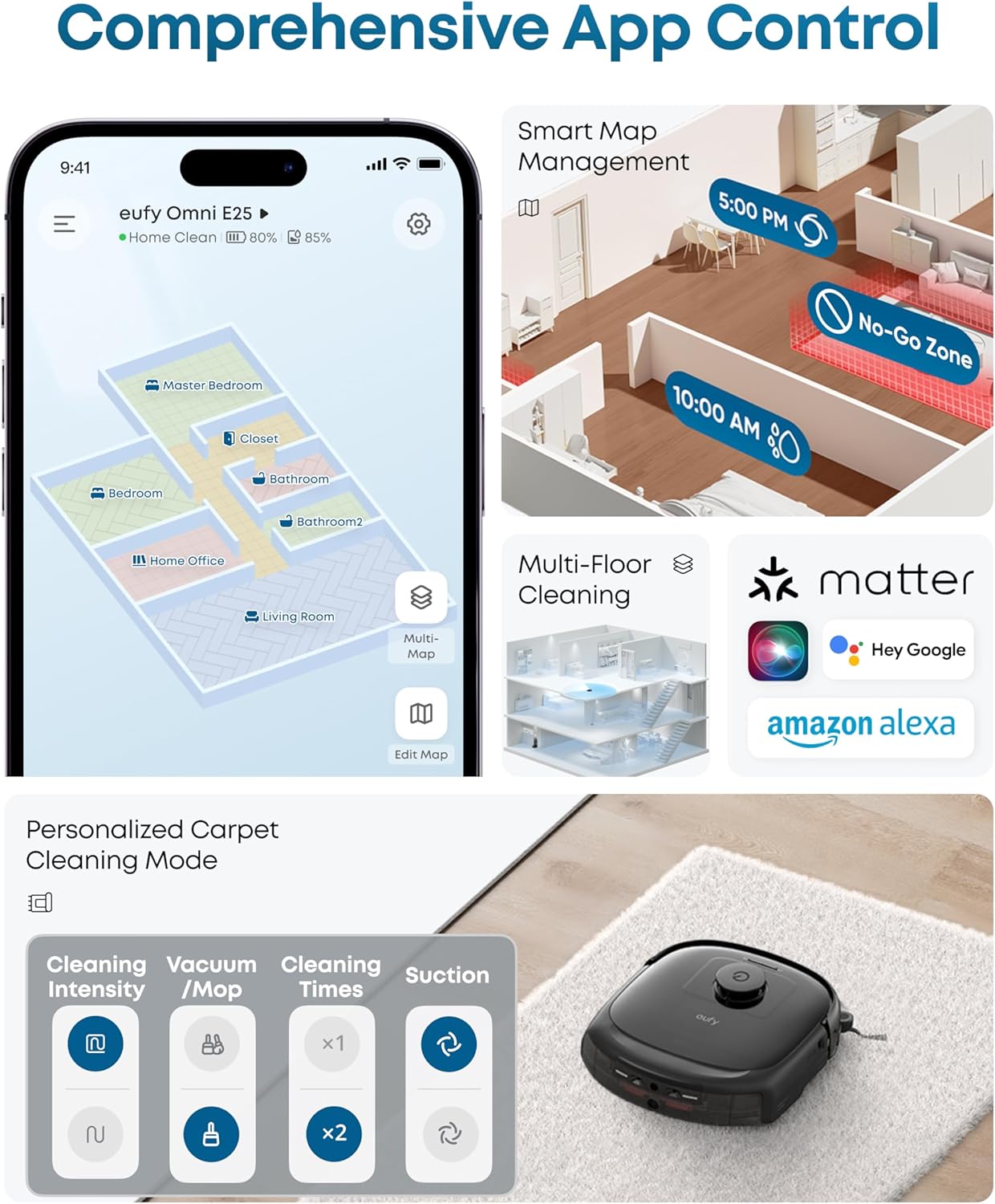 eufy Robot Vacuum E25, HydroJet System with Roller Mop, 20,000 Pa Turbo High Suction, All-in-One Robot Vacuum and Mop Combo for Home, Edge-to-Corner Cleaning, Zero-Tangle Design, AI Obstacle Avoidance