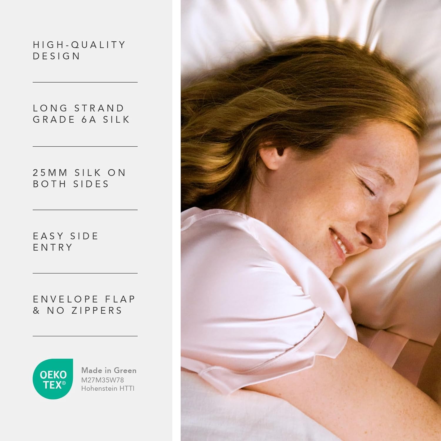 LUXURIOUS BEDDING: Our pillowcase is made of 100% long strand, Grade 6A Pure Mulberry Silk. There is silk on BOTH sides of the pillowcase! The density of silk is measured by momme. The higher the momme, the more silk. We have added a unique side entry that is slightly offset. The pillowcase can be used as both a sham and pillowcase. An oversized envelope flap ensures the pillow will remain securely inside your pillowcase.