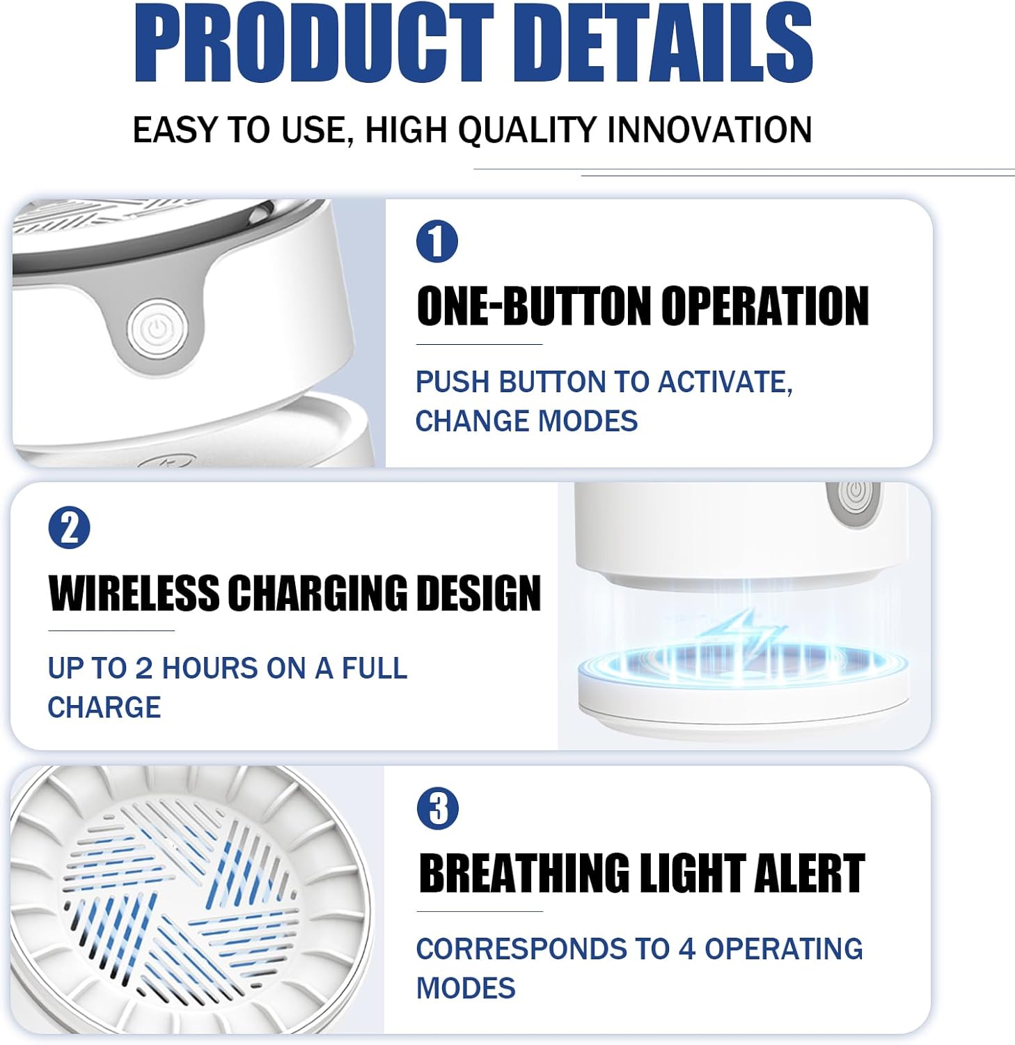 Drop it on the included wireless charging base and go—no ports, no cables, no hassle. The 3600mAh battery delivers 120+ minutes of total use per charge.