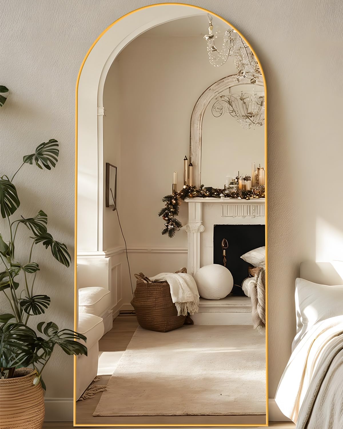 【Full Length Mirror】With its generous 58″ height and 19″ width, this mirror offers a full, clear reflection so you can confidently view your entire outfit. The arched design and minimalist frame blend effortlessly into any decor. Perfect for bedrooms, living rooms, entryways, home gyms, cloakrooms, clothing stores, and more—wherever you need a practical and stylish mirror.