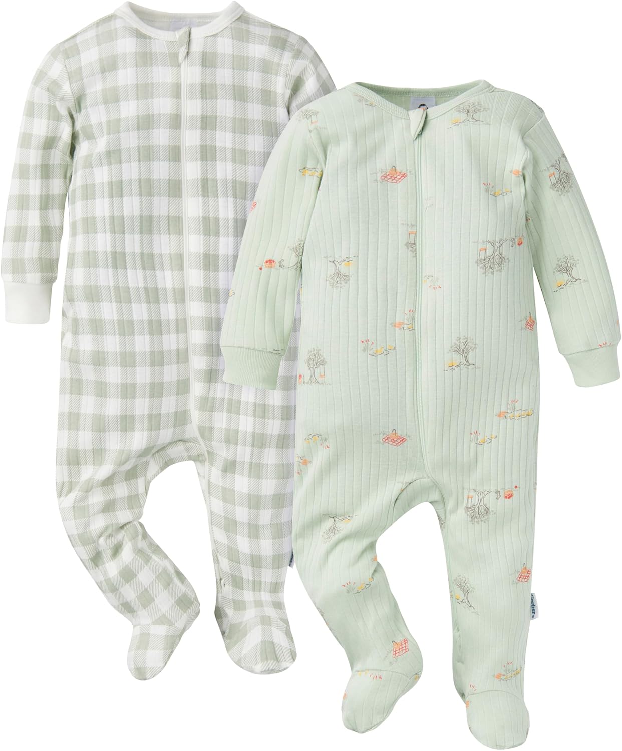 Gerber Girls’ Baby Unisex 2-Pack 2-Way Zip Textured Sleep ‘N Play