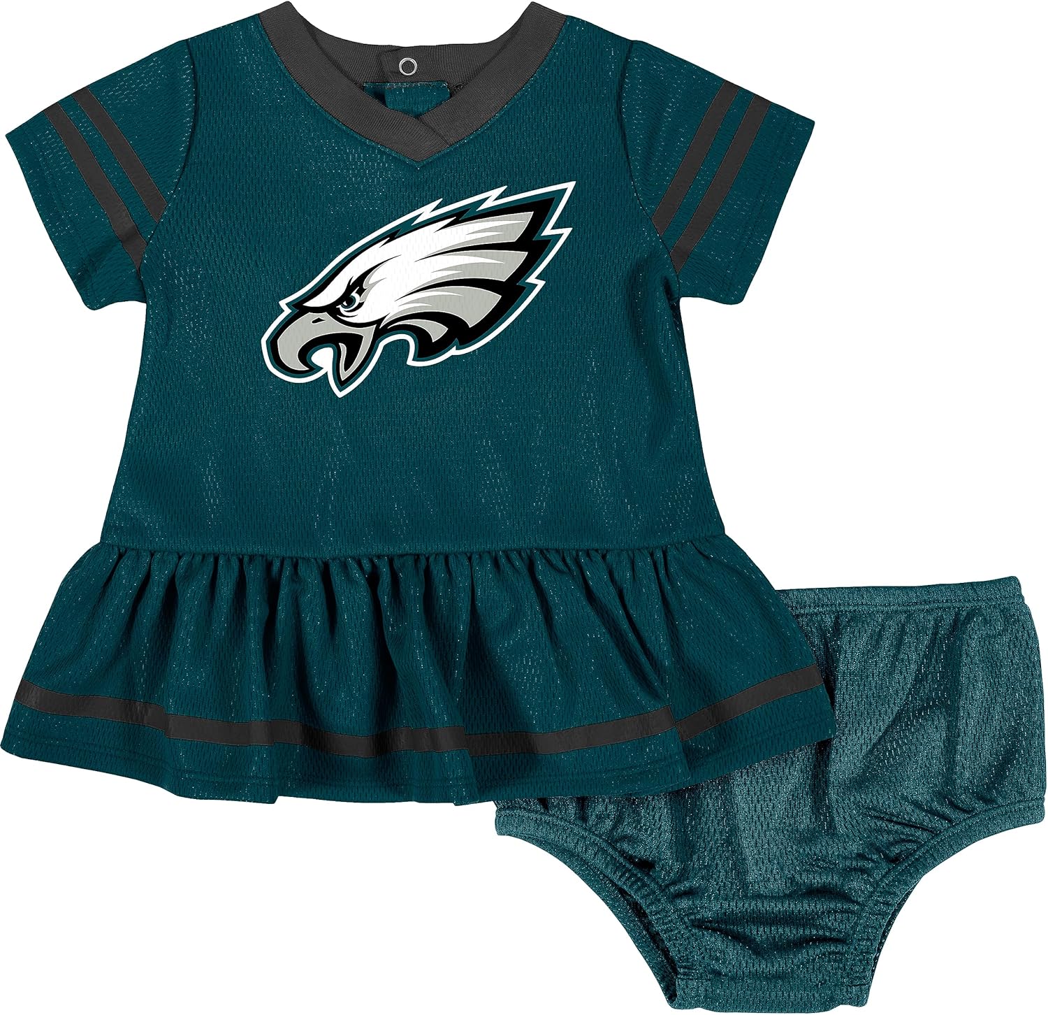 Don’t leave any room for guessing which team your little girl pulls for on game day with this baby girls’ dress and matching panty set! The 100% poly dazzle mesh and rib fabrics keep her comfortable on all of her adventures. The logo is proudly displayed on the front of the dress using big, bold screenprint artwork. Matching team colors help you create a look that’s perfect for game day or any day you want to show your team pride! Just toss this outfit into the washer and dryer with the rest of the easy care items for quick and simple cleaning!