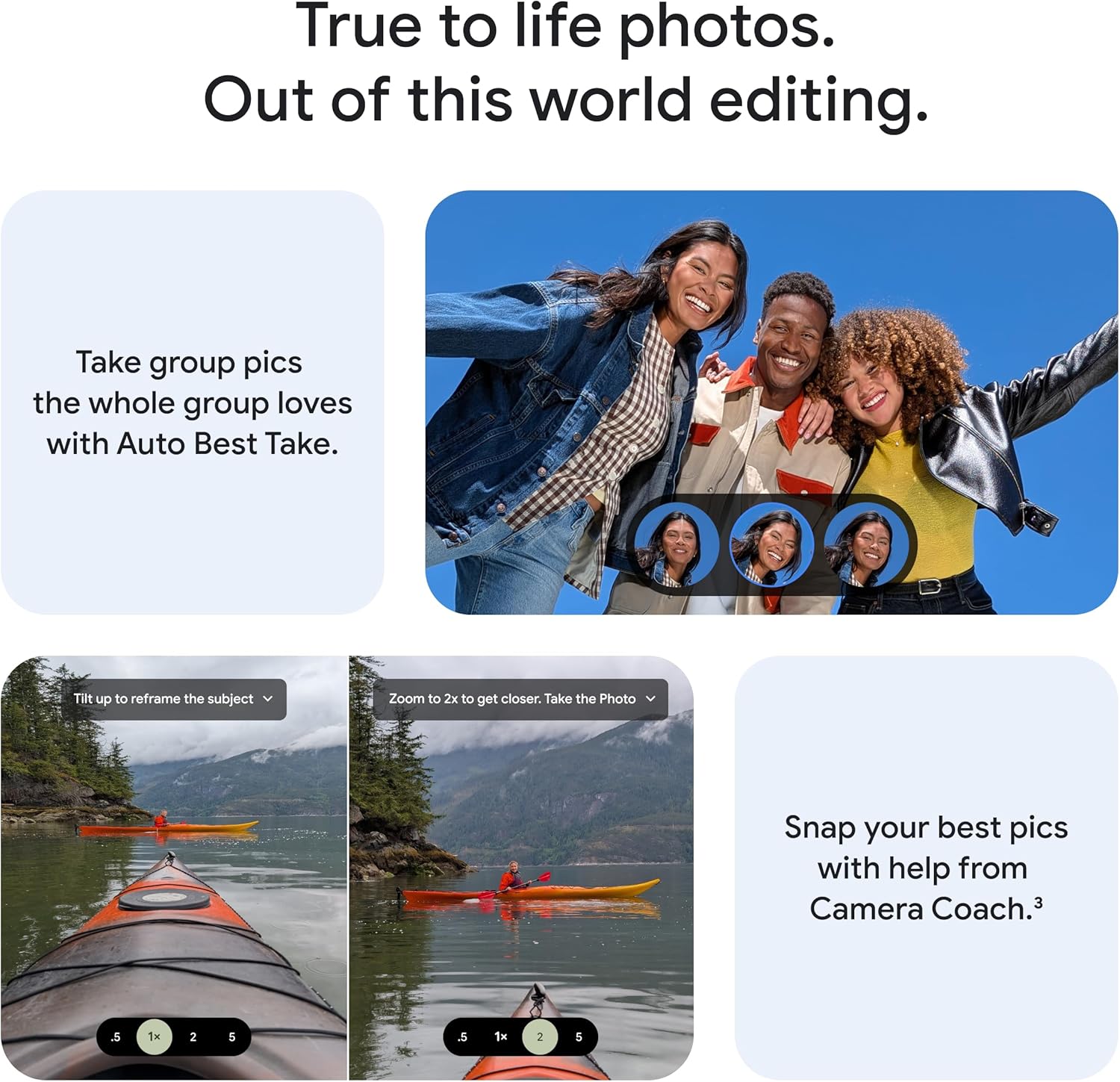 The upgraded triple rear camera system has a new 5x telephoto lens – up to 20x Super Res Zoom for stunning detail from far away; Night Sight takes crisp, clear photos in low-light settings; and Camera Coach helps you snap your best pics[3]