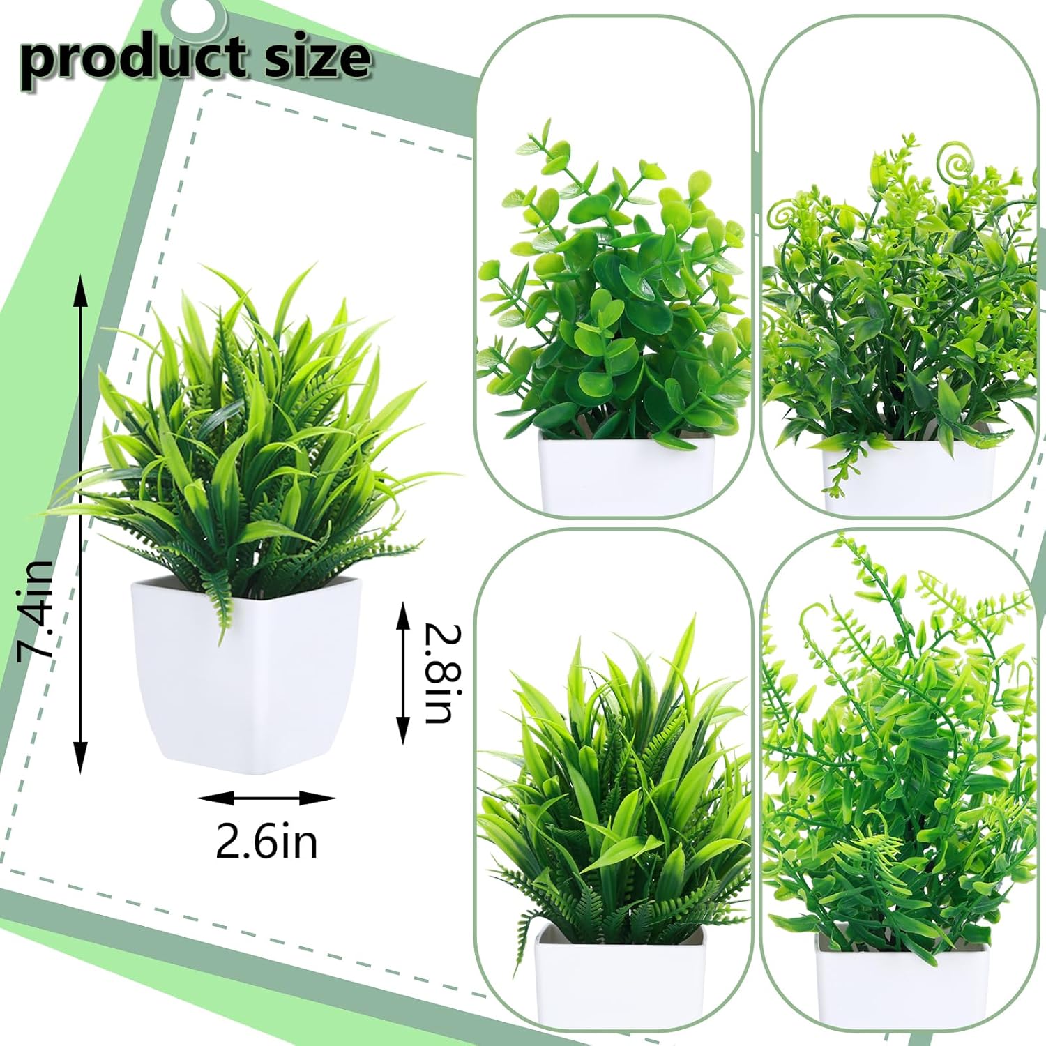 【Light up Small Corners】Our small artificial plants are 7.5″ tall and 2.5″ wide, and the pot is 2.5″ tall and 2.7″ wide. You can effortlessly rearrange them on a tray or in any other corner to add light and life to your home.