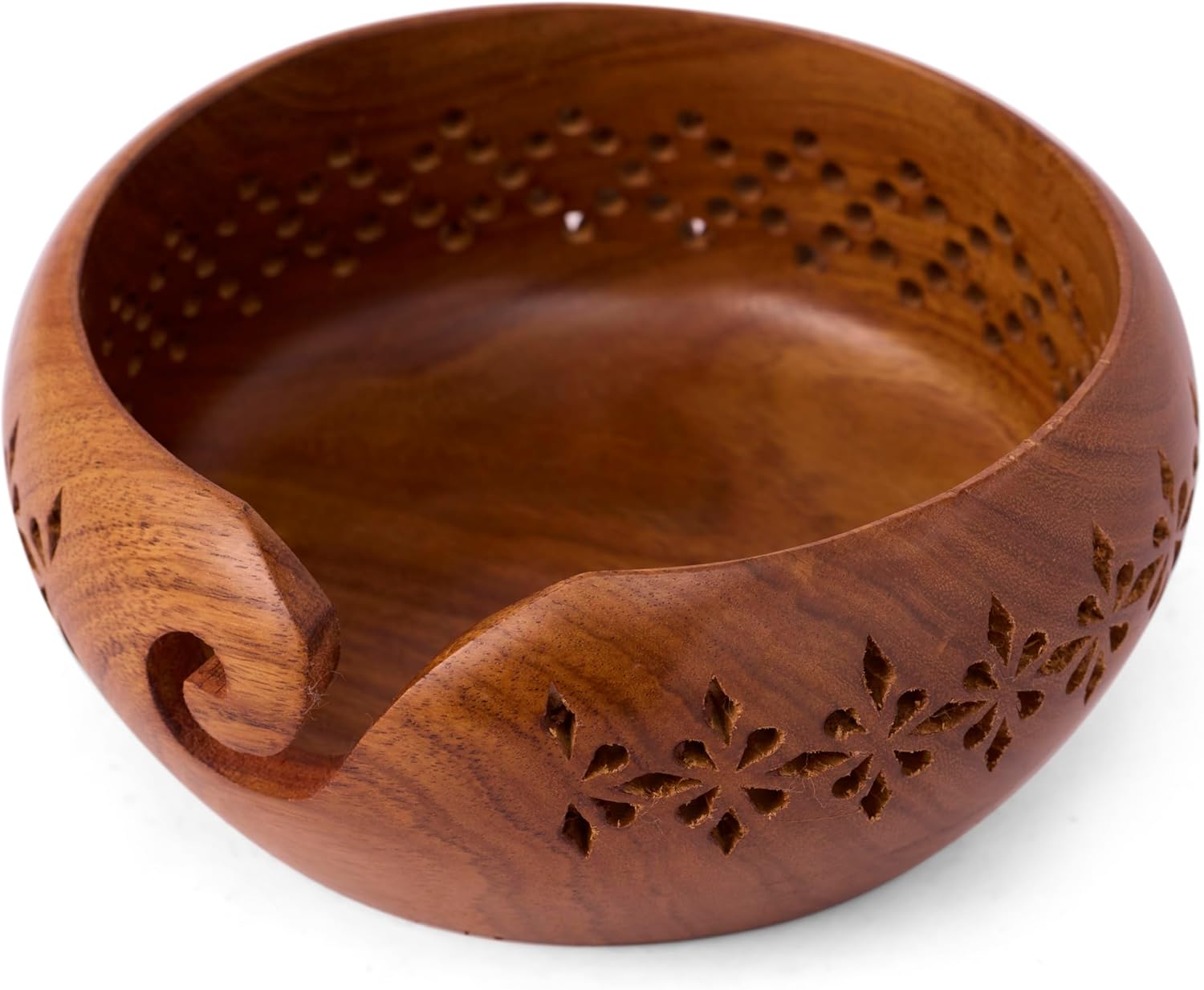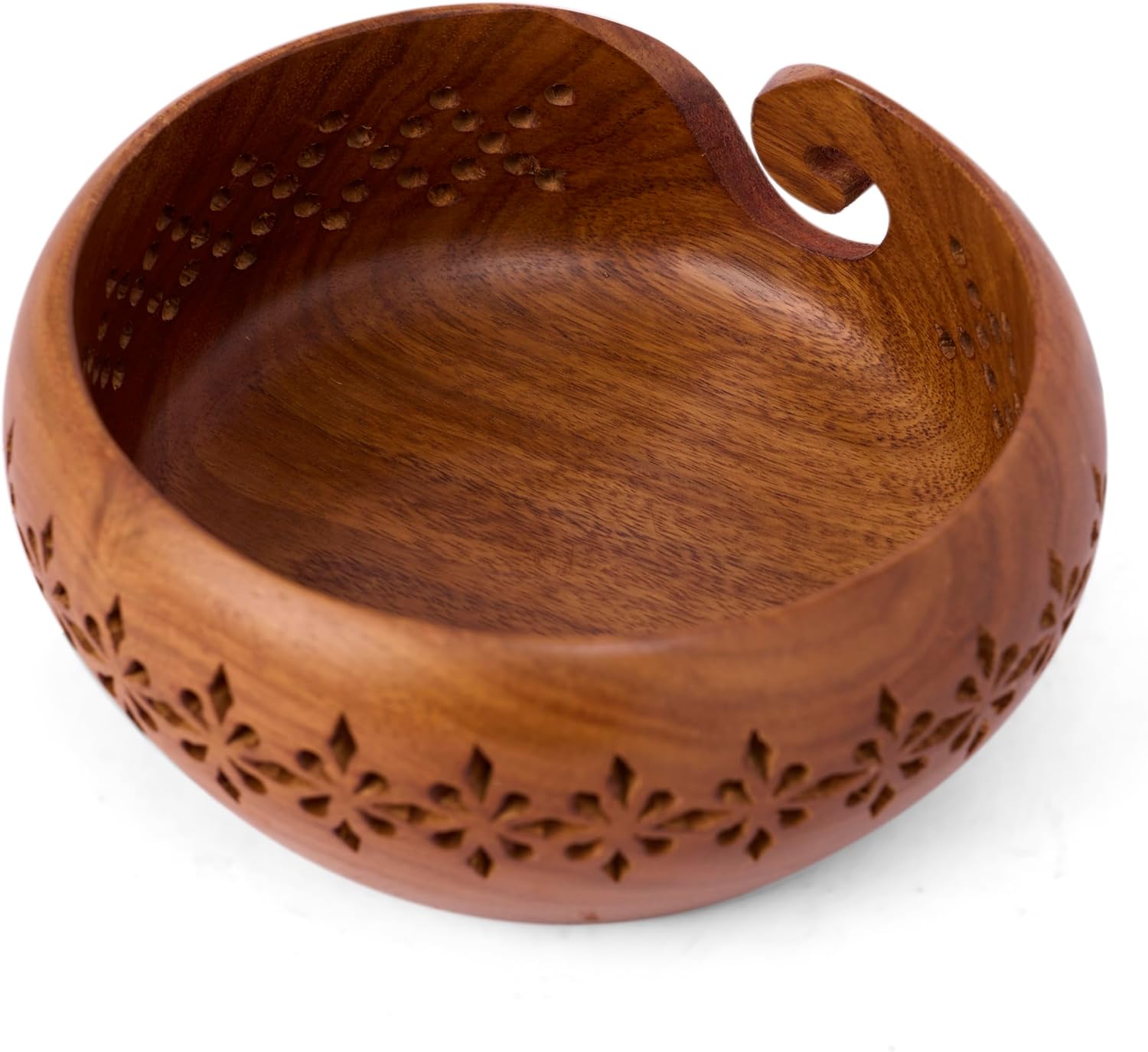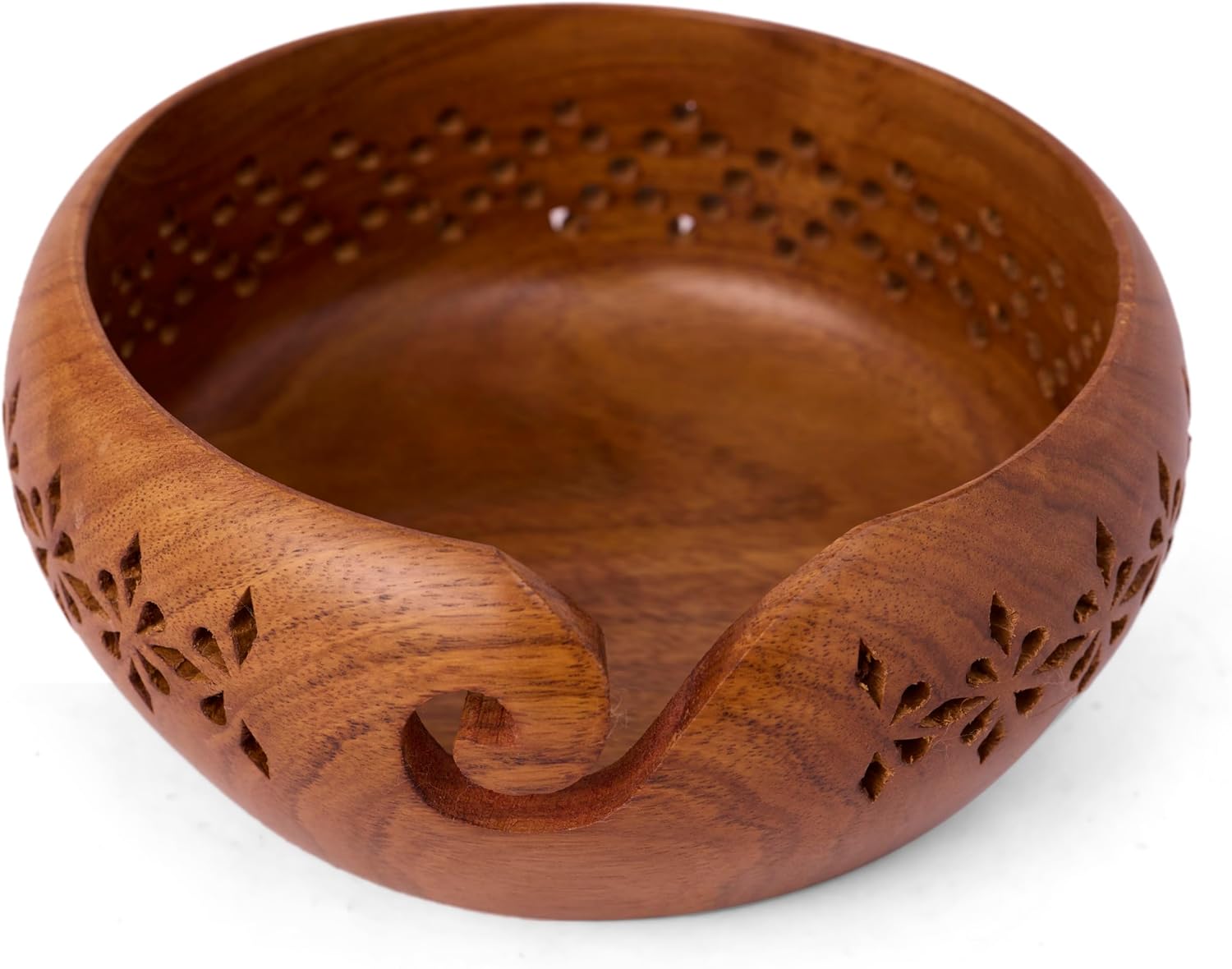 GURU JEE™ Handmade Wooden Yarn Bowl Wool Ball Holder Knitting Bowl Crochet Holder Gifts Showpiece (Natural_Brown_Jali_1) (1 Piece)