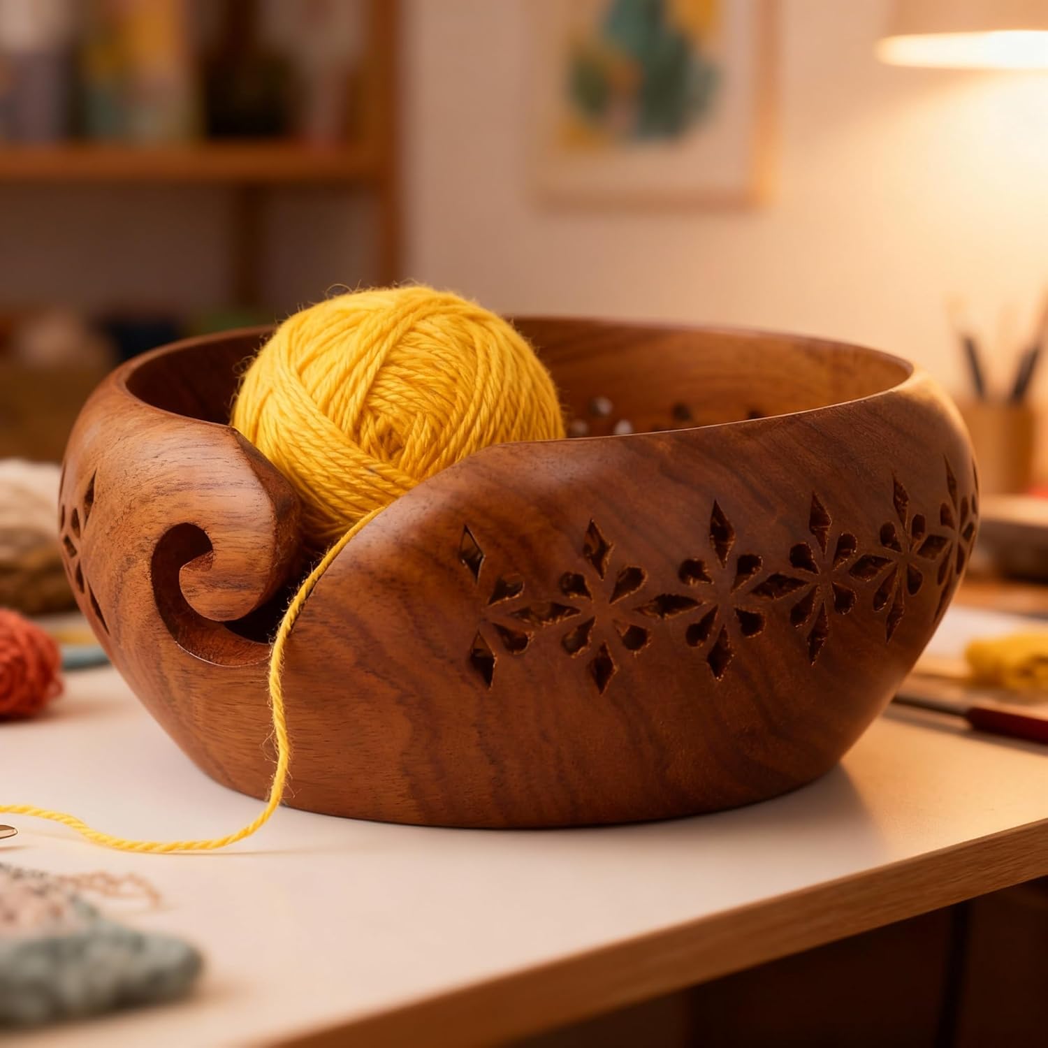 Handcrafted out of natural Indian wood,wooden yarn bowl for knitting or crochet holder.Perfect for gifting on birthdays and festive occasions to knitting enthusiasts.