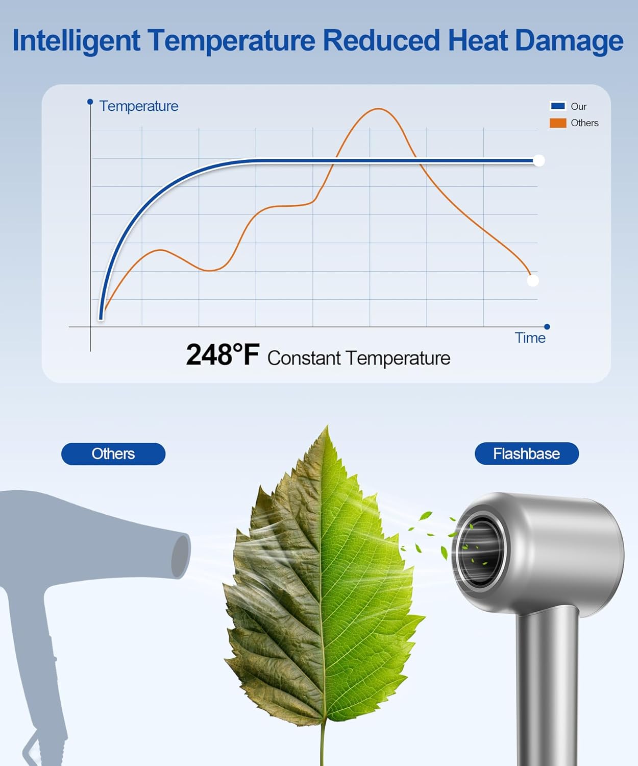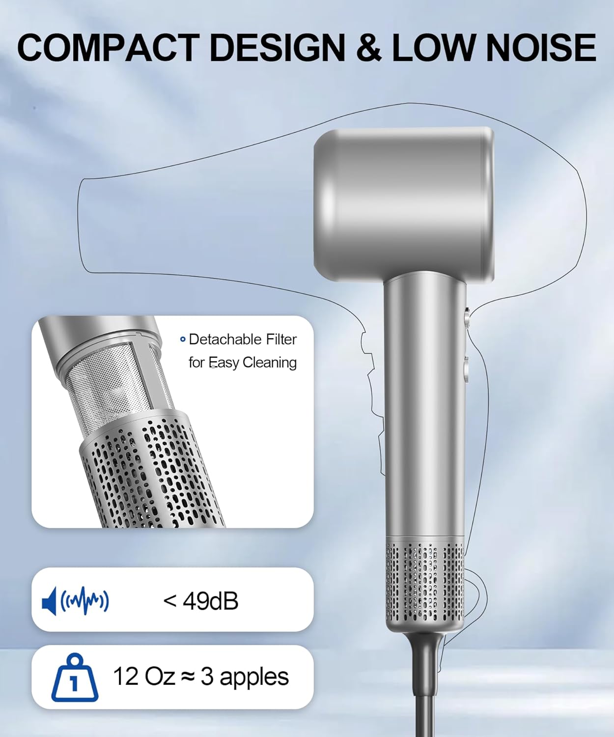 【Ultra-Fast Drying】This high-performance hair dryer uses a 160,000 RPM brushless motor to deliver strong, focused airflow for noticeably faster drying. Designed for users who want a powerful blow dryer that reduces time and heat exposure, making daily hair care more efficient.