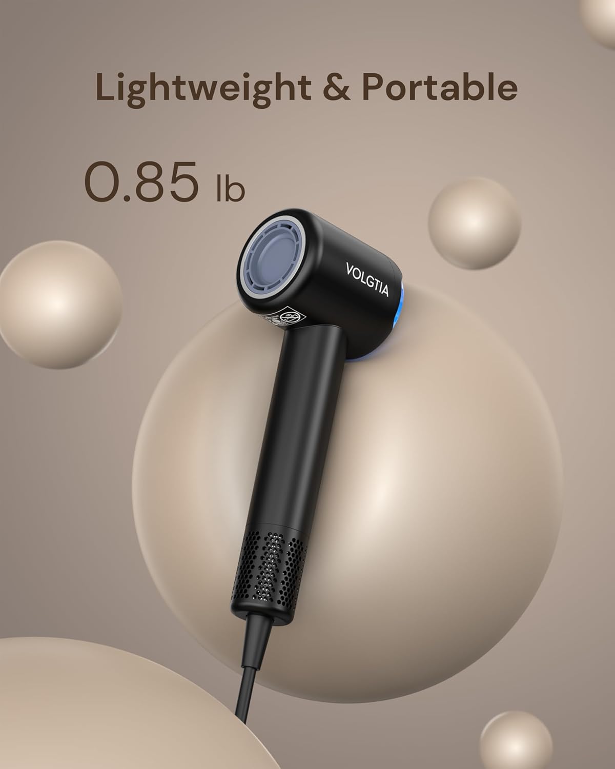 Quiet Performance, Lightweight Design – Enjoy powerful drying at just 65 dB with six-layer noise reduction. Weighing only 0.9 lb, it’s perfect for everyday use and easy to pack for travel.