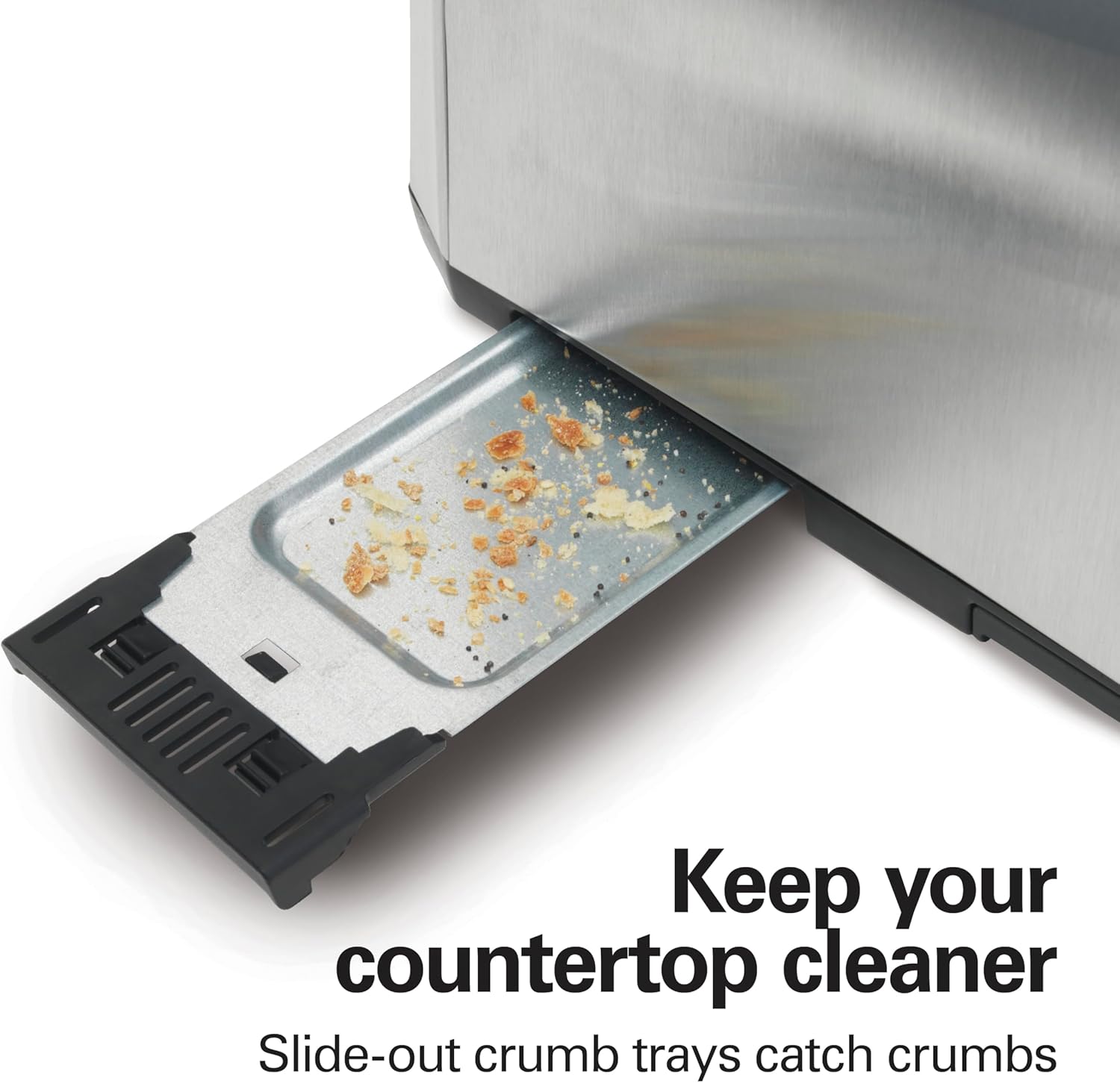 KEEP THE COUNTERTOP CLEANER: Conveniently remove and discard crumbs from the bread toaster. The slide-out crumb tray catches crumbs so they don’t end up on your countertop